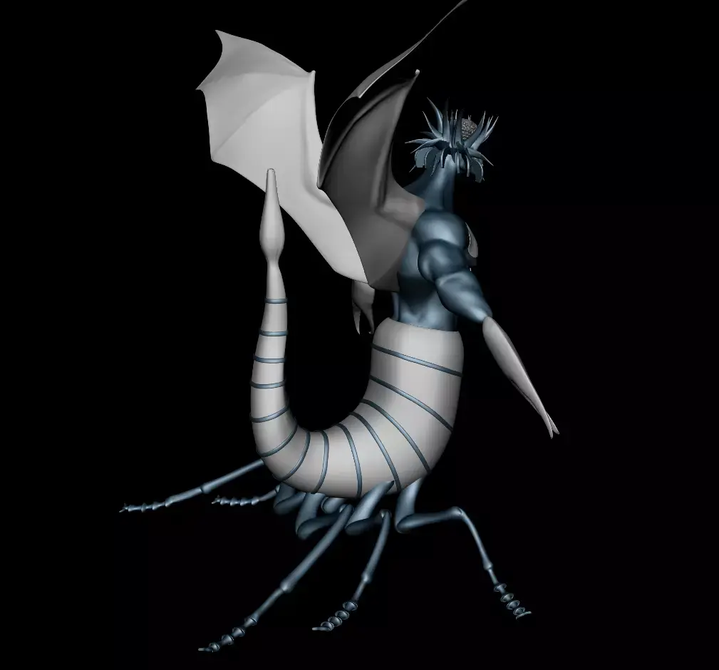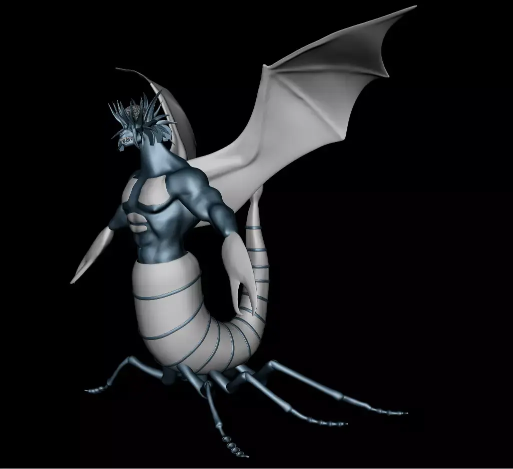 High Poly Sculpt: Rich in detail with carefully modeled anatomy, musculature, and creature features.