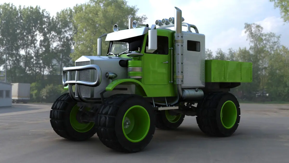 Bigfoot Monster Flatbed Truck model. The model is designed in such a way that we get a hybrid of a flatbed truck and a Bigfoot Monster Truck.