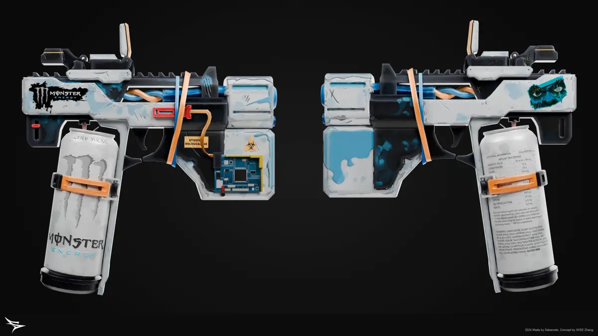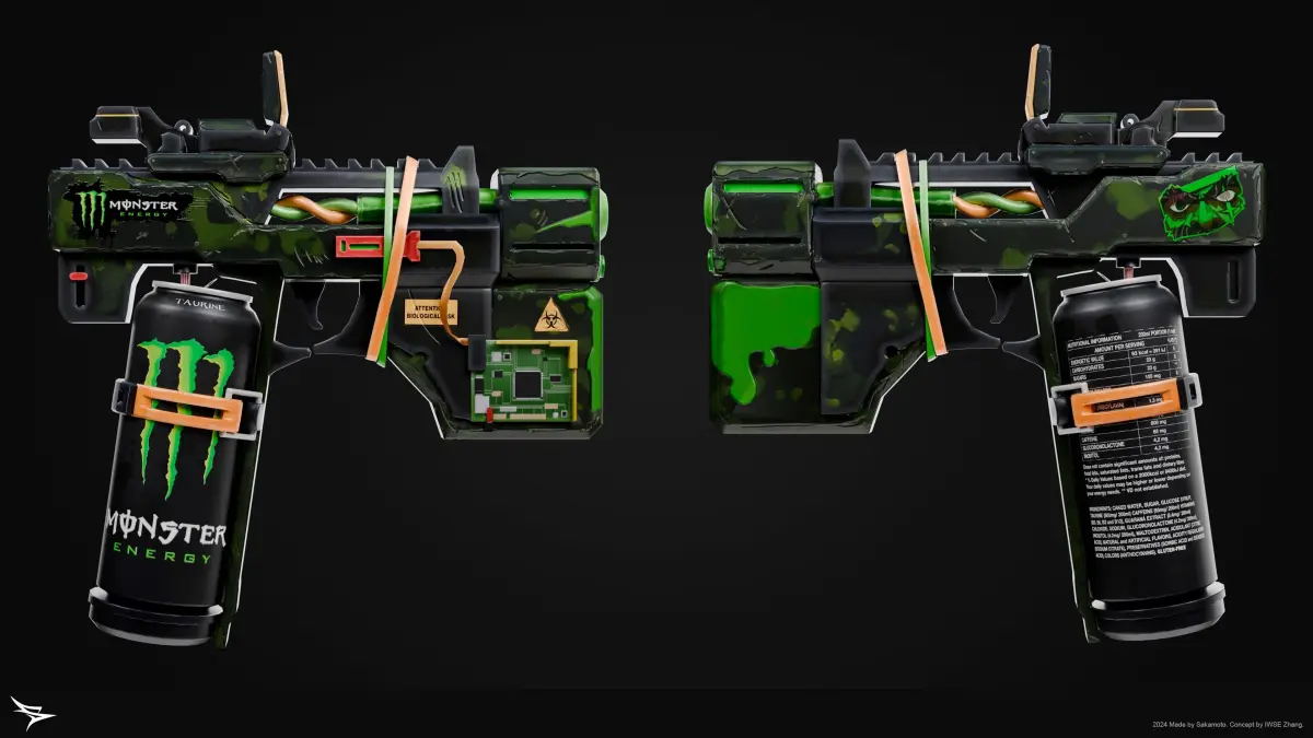 MONSTER GUN - ENERGY PACK SKINSA Monster pistol with 2 variable skins (Normal and Zero Sugar). 2024 Made by Sakamoto. Concept by IWSE Zhang.
