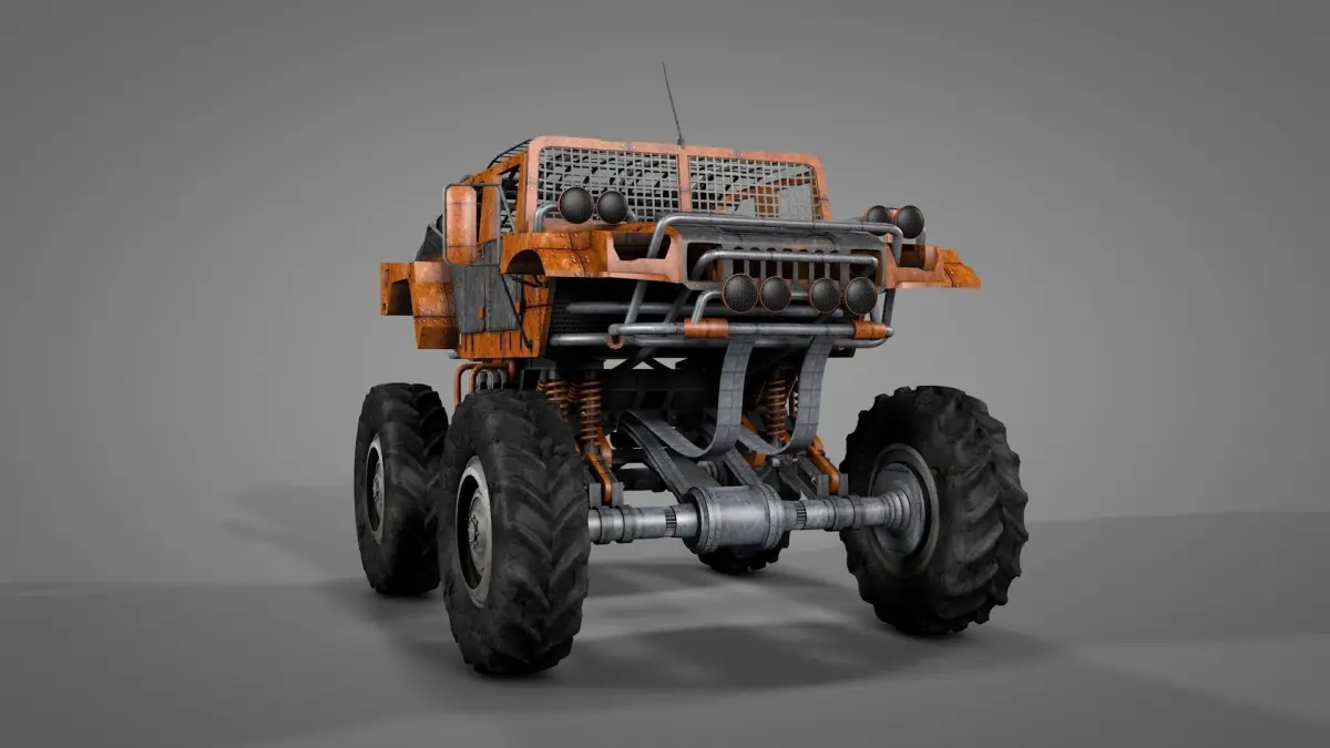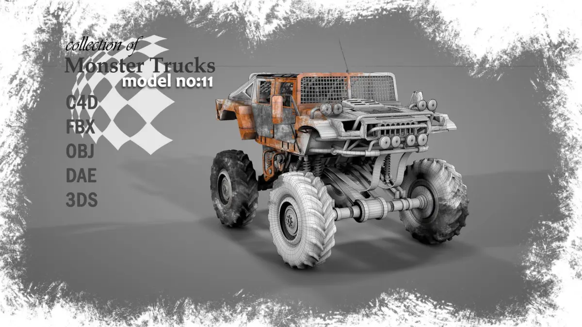 This bad boy is created for sand and mud. He is ugly and strong. Try to drive and squash something badly which makes you sick. Source Cinema file has hundreds of objects and most of them still parametric. You can find and change their values to make the model looks some different. Except this source file, others have connected objects and baked textures. Need help? Please contact me asap.