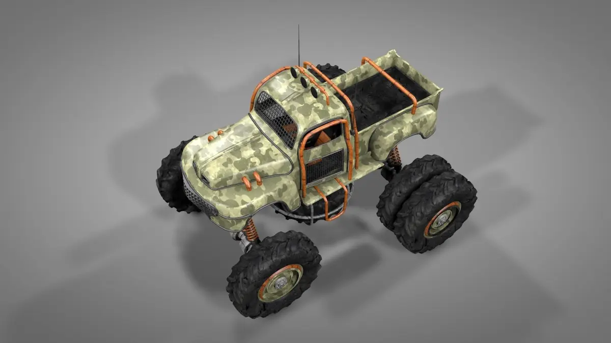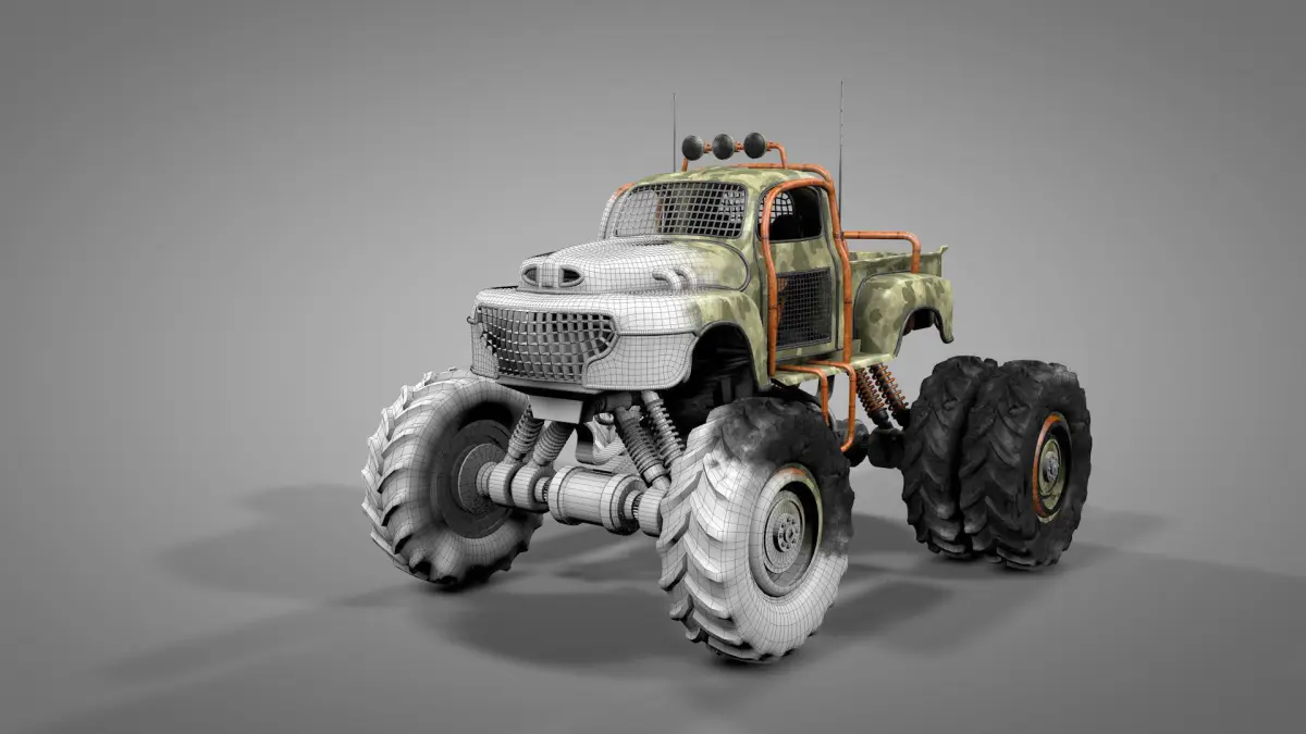 This is the sixth model of my monster trucks collection. This one is a safari or military model of the 1950 Ford and heaviest one in my Moster Trucks collection. Source Cinema file has hundreds of objects and most of them still parametric. You can find and change their values to make the model looks some different. Except this source file, others have connected objects and baked textures. Need help? Please contact me asap.
