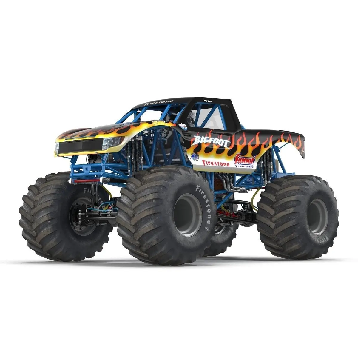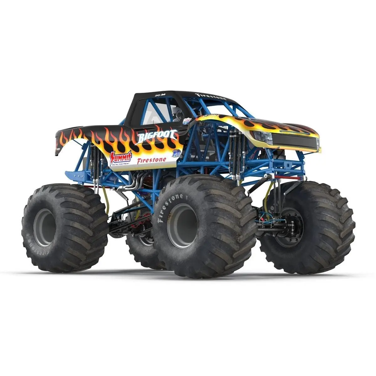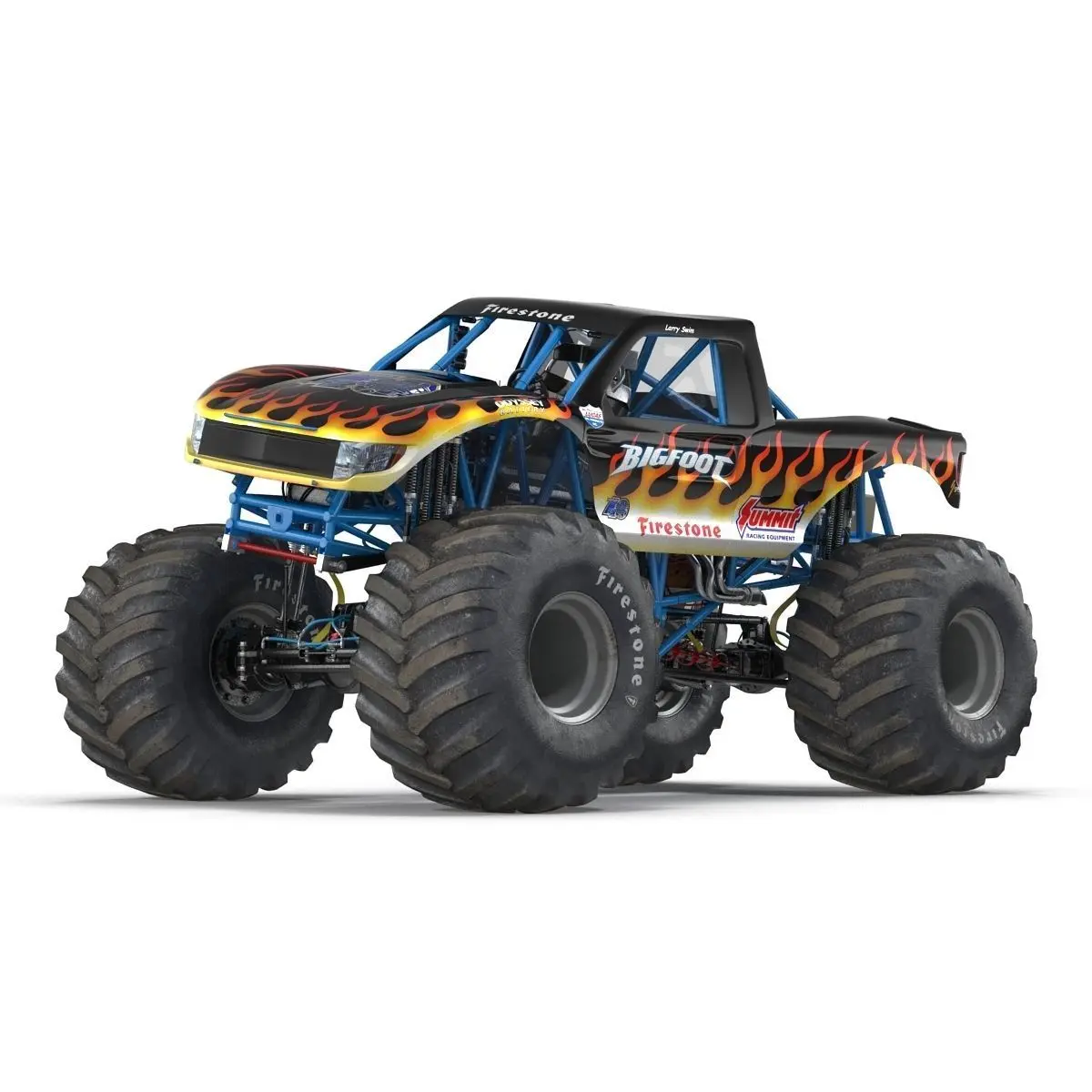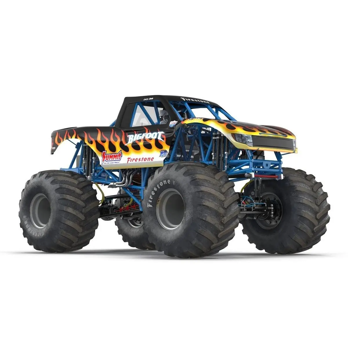 Monster Truck Bigfoot 3d model is ready to be animated. You can easily position it the way you need or animate it the way your project requires using helpers in 3D Studio Max. See the renders to get an idea of how animation works.