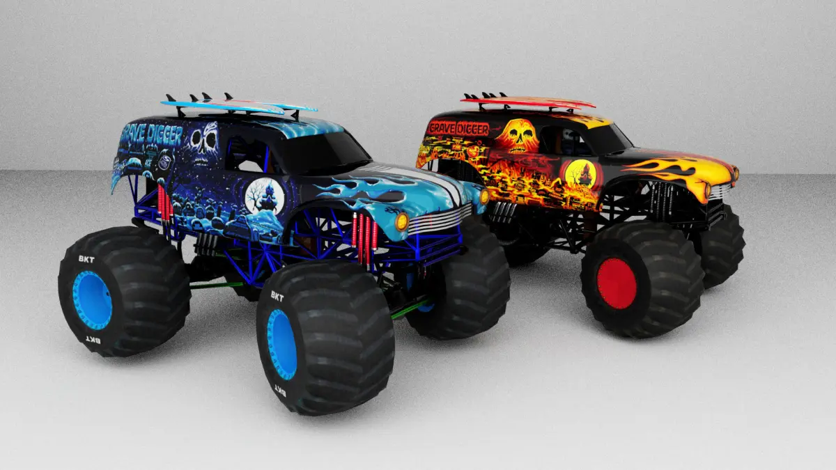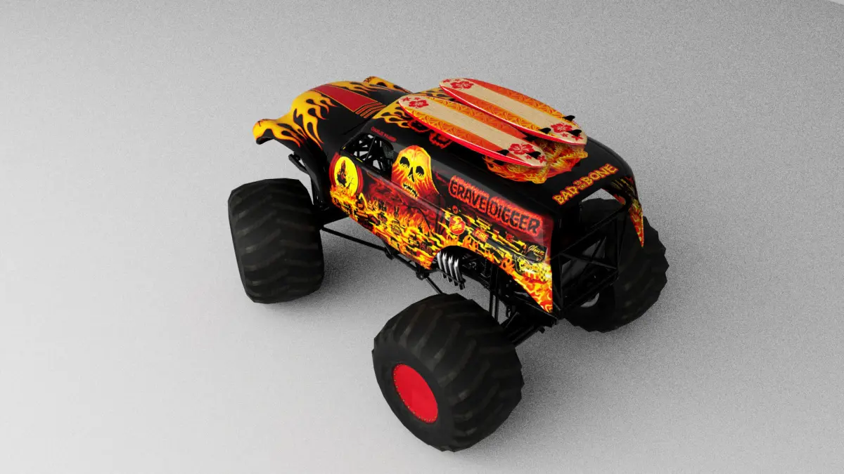 Wheels have spindle nodes for easy animation. Monster Truck have logical hierarchy and naming.