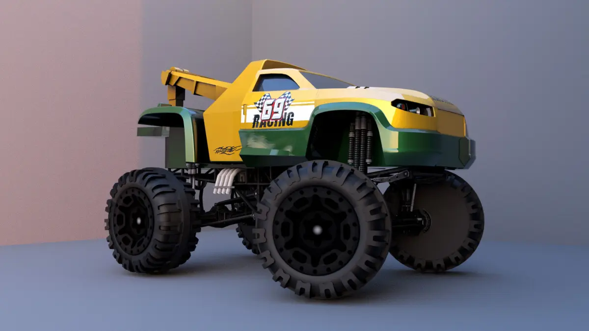 Wheels have spindle nodes for easy animation. Monster Truck have logical hierarchy and naming.