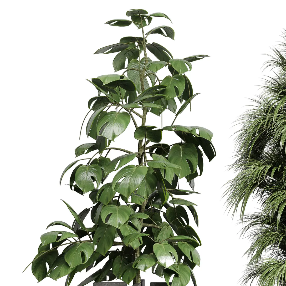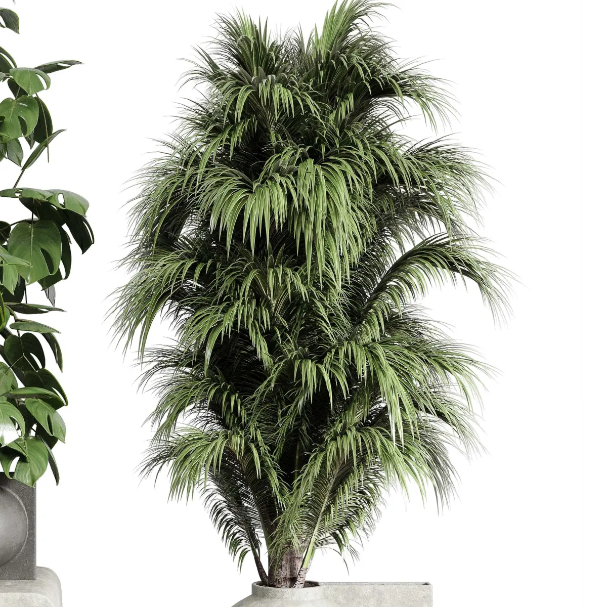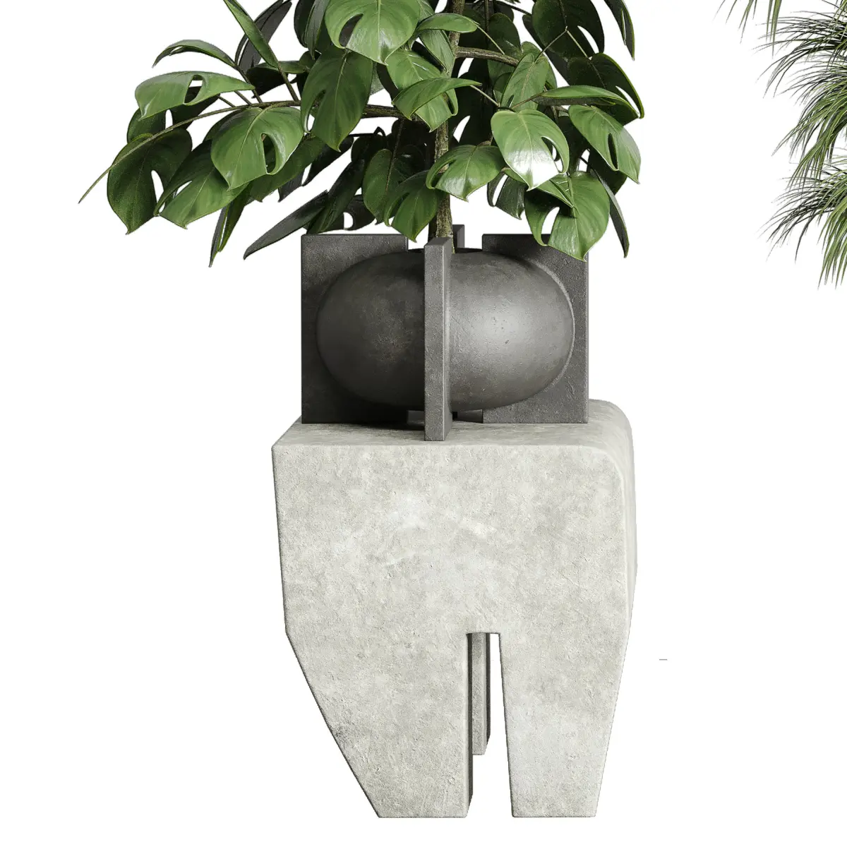 Monstera and Palm set Plants in concrete dirt vase 205 3D model