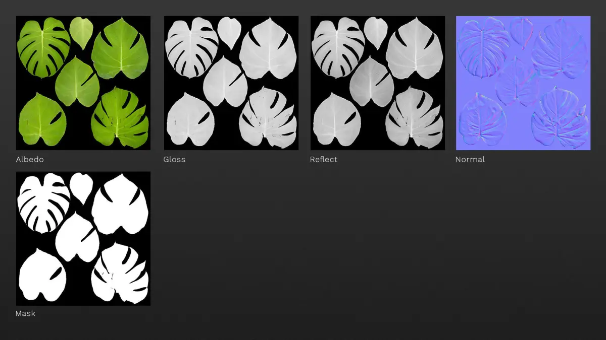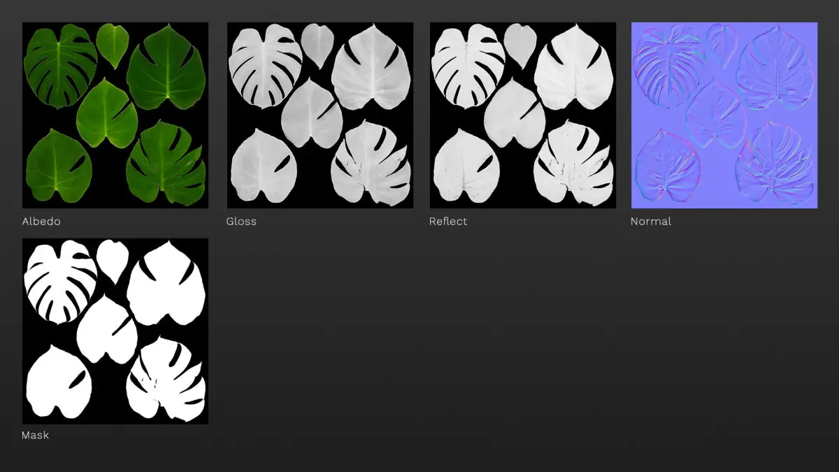 Monstera deliciosa leaves textures and model 3D model