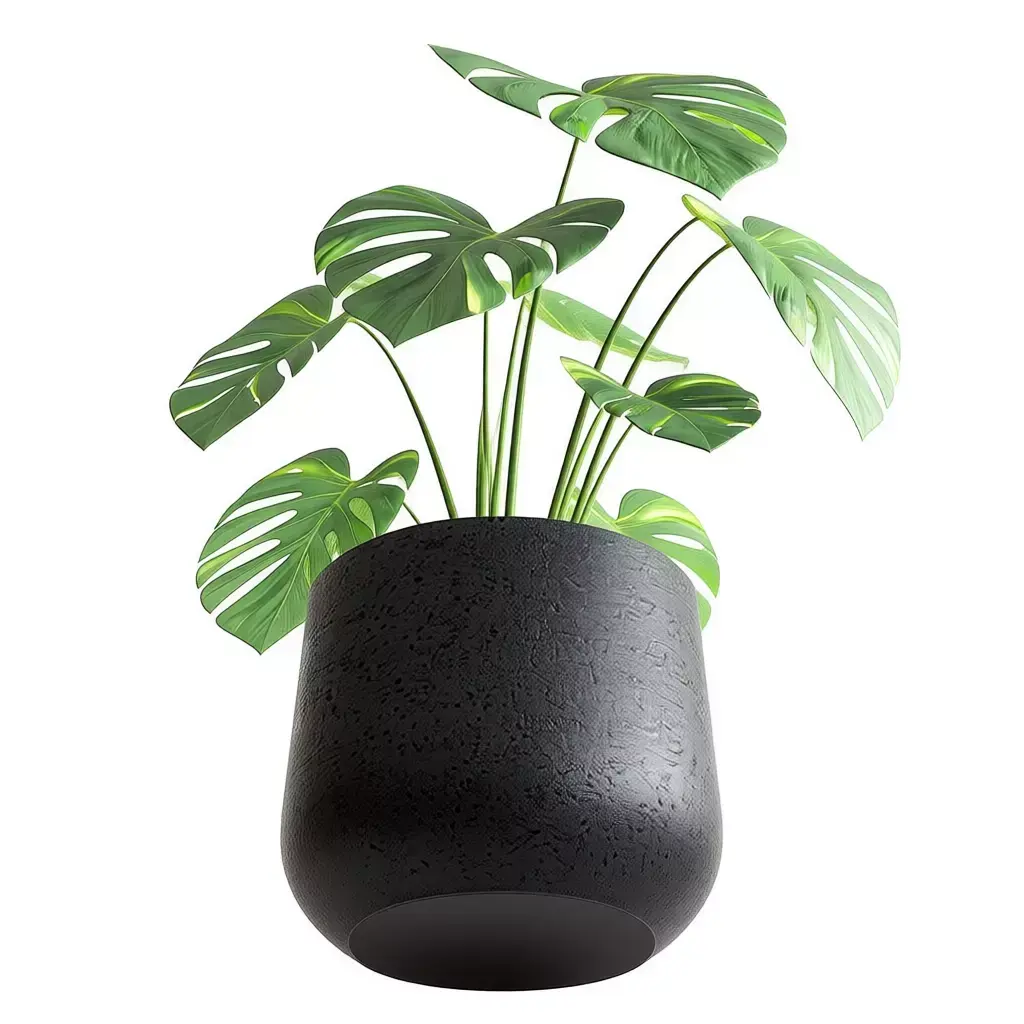 The model includes multiple high-resolution PBR materials with albedo, roughness, normal, and metallic maps that simulate the glossy texture of real plant leaves under various lighting conditions. The black matte pot is modeled with fine surface details, such as speckled texture and realistic depth, enhancing the overall authenticity. Both the plant and pot are optimized for high-quality rendering in Blender, Maya, 3ds Max, Cinema 4D, and other professional 3D software platforms.