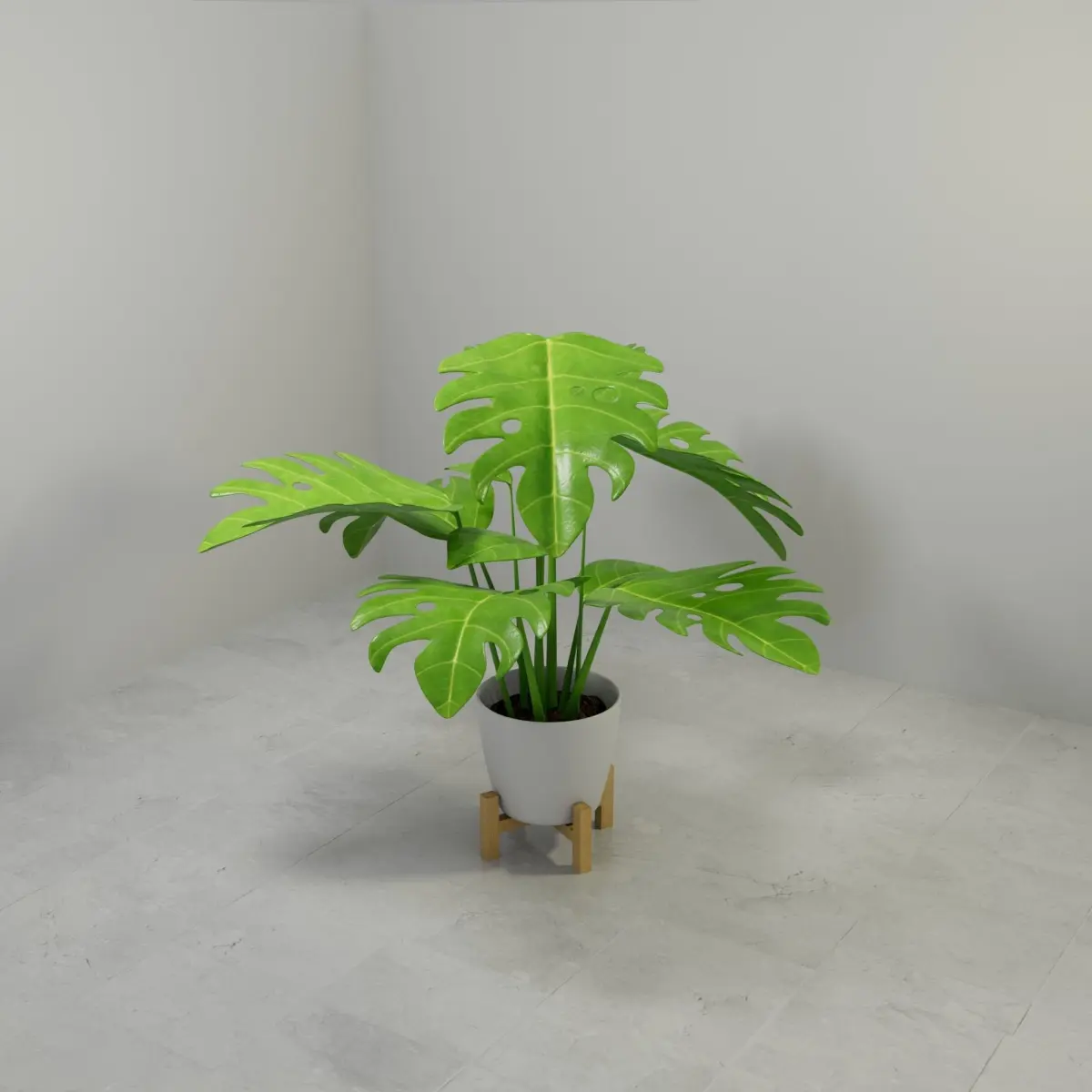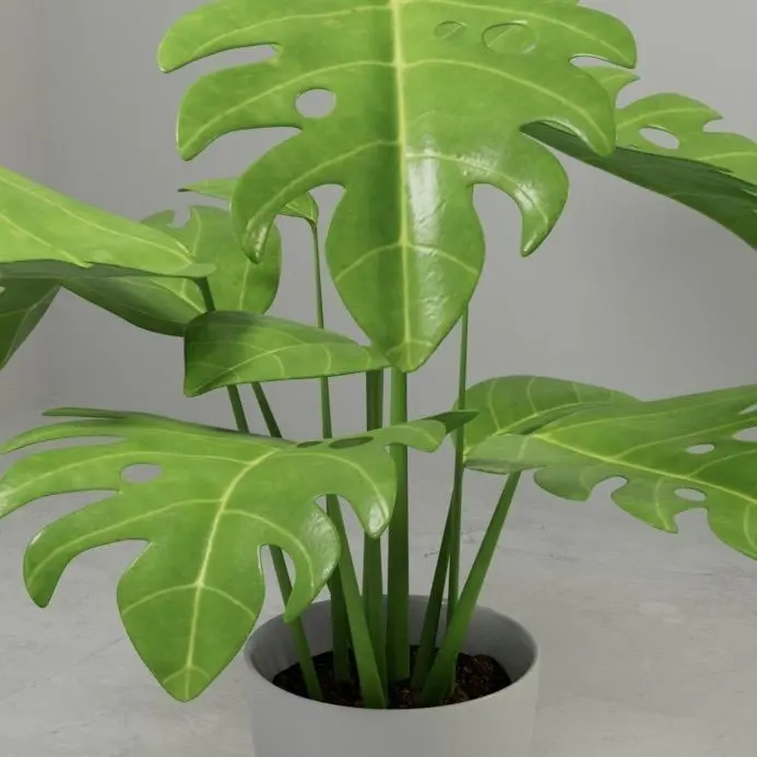 Monstera plant in Pot 3D model, A stunning exotic Monstera plant that is suitable for interior and exterior design. The plant in a pot with a modern and innovative design made of a porcelain vase and a wooden stand on which the entire pot sits on.The realistic leaf texture consists of only two texture maps, a real leaf texture color map and a bump map. Of course, the wooden stand, the sand and the floor are also textures, everything is in a zip file.Polygon and Vertice count: .................... 436400 polygons ...................... 218200 vertices. fbx, obj and maya files include UV mapping: Yes Enjoy!