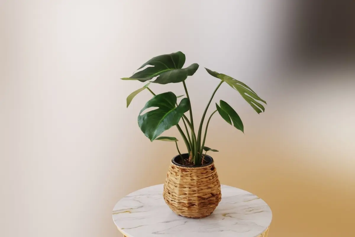 Photorealistic 3d Model of a small Monstera plant in a natural willow pot. Made for Arch-Viz and other CGI work.Ready for use in: