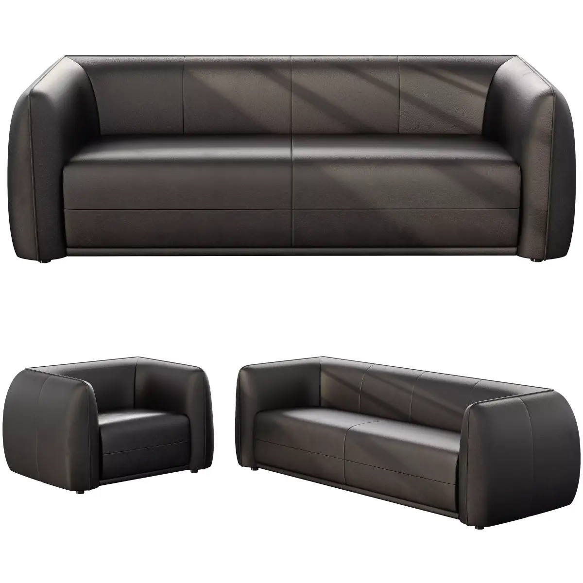 Presented from multiple angles, the model highlights clean geometry and realistic textures. It’s compatible with Blender, Unreal Engine, Unity, 3ds Max, and Maya, ensuring seamless integration into architectural visualizations, game environments, or product showcases. Whether you're designing a luxury apartment or a stylish office waiting area, the Montana Sofa adds comfort and elegance to any scene.