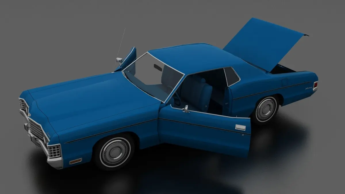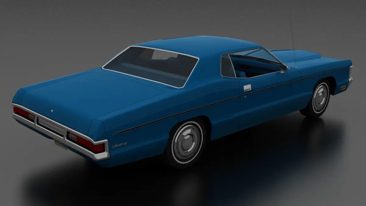 3D model of Monterey 2dr Hardtop 1972. Opening doors and boot, detailed interior. American 2 door Full-Size car.