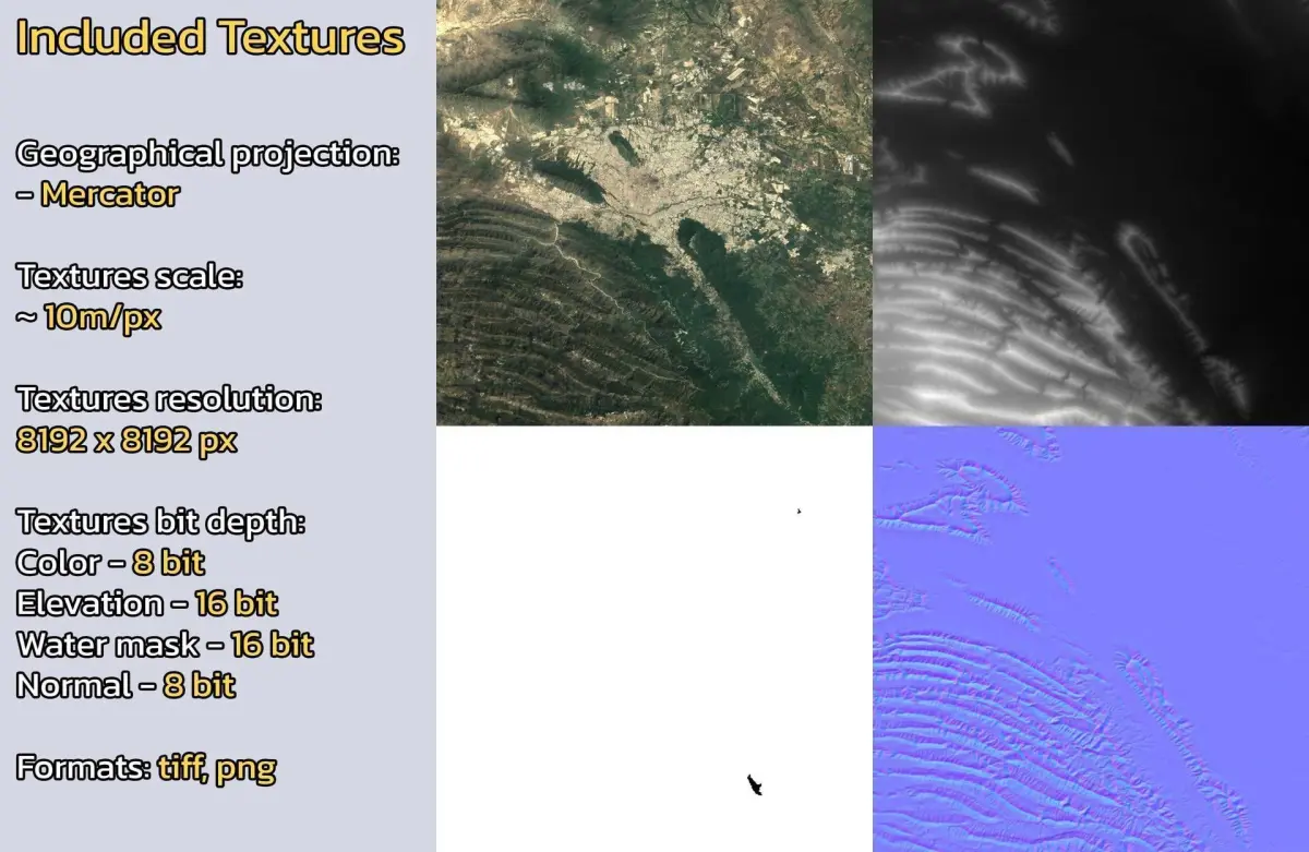 Warning: minor clouds/artifacts may be present on the diffuse color satellite texture due to the nature of the dataset. Check product images.