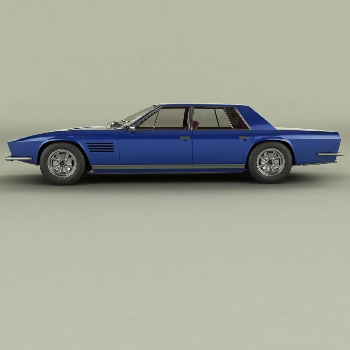 High detailed, correctly scaled model of 1971 Monteverdi 375-4 Sedan. Originally created with 3ds Max 8. Rendered with V-Ray, files with standard materials are included. Unit system is set to metric units. Model is built to real-world scale. Geometry is Editable Poly (quads/tris only). TurboSmooth is use separately to objects (87 of 134 named objects) with iterations 2 ( 1251476 polys, 654747 vert.) Each file was checked before upload. Materials and textures are included (7 textures - jpg 1024X1024).