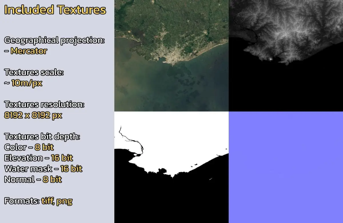 - Textures resolution: ~10m/px