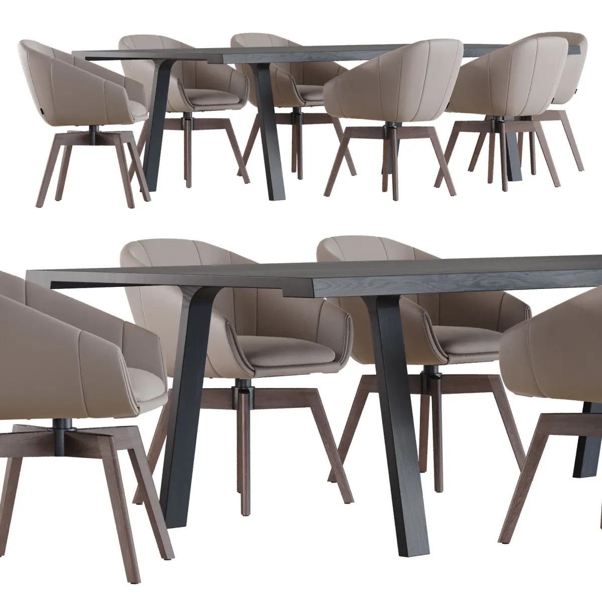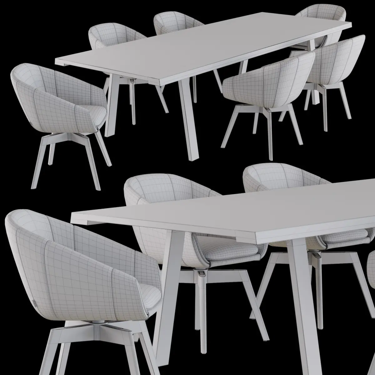 Table - Montis Doble Wooden Dining TableChair - Montis - Luna dining chair with Leather material + stitchingType: modelFormat: 3Ds Max 2015Export: FBX, OBJRender: Corona (9), VrayPolys: 249848Verts: 262770Units: MillimetersDimension: 2132 x 4028 x 797