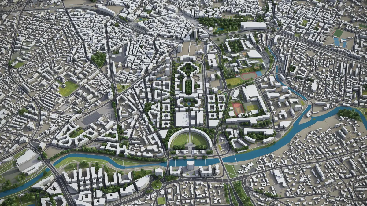 - Full city extents up to 100 x 100 km — or crop to an area of interest for better format compability and scene performance