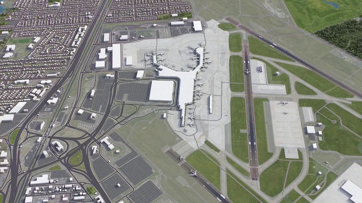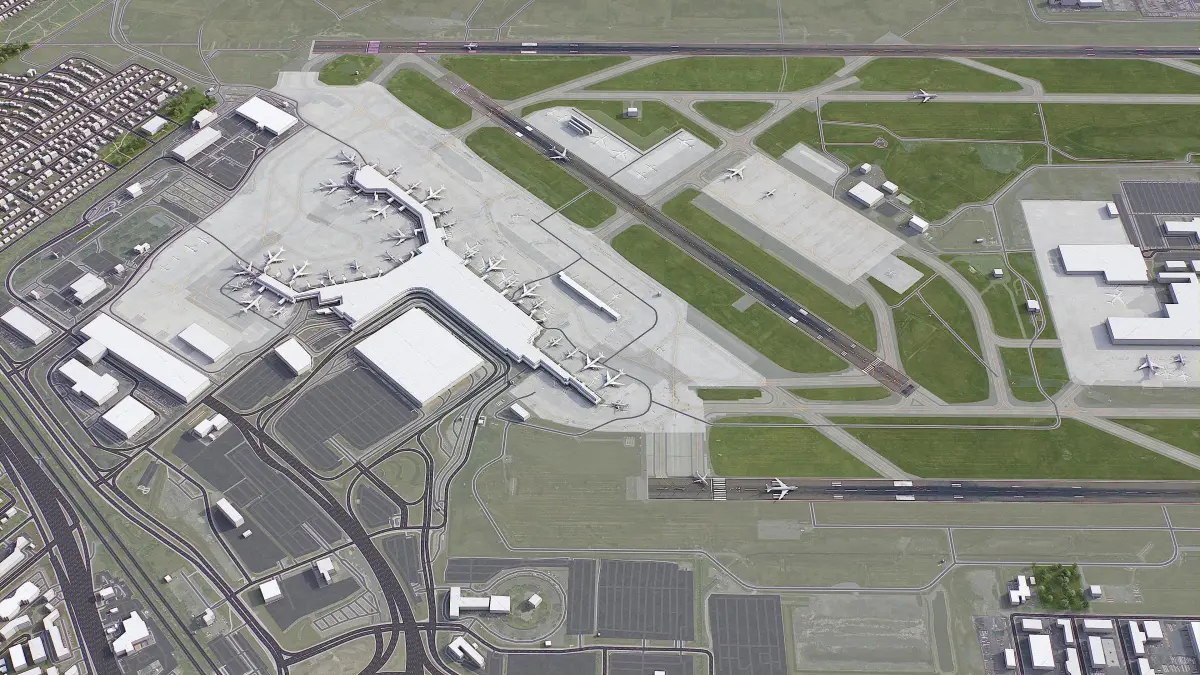 - Trees, vegetation, landuse and airport surface with the textures assigned
