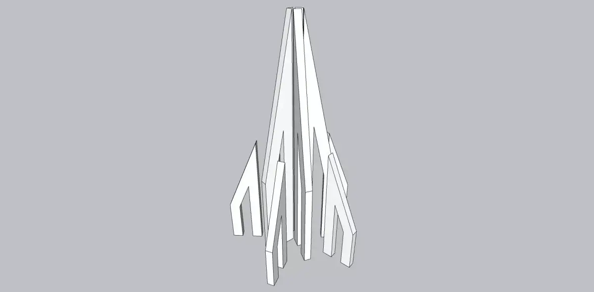 This 3D model features a towering monumental sculpture, designed with angular geometric shapes that come together to form a striking modern art piece. Ideal for use in urban or public spaces, this sculpture adds an artistic and dynamic element to any environment. It is a perfect addition to architectural visualizations, public park designs, city landmarks, or exhibition spaces. The sharp, elongated edges of the sculpture make it an eye-catching feature in any setting, embodying an abstract or contemporary aesthetic. The model is designed for use in outdoor, monumental installations, and provides versatility for integration into public space renders or architectural projects.