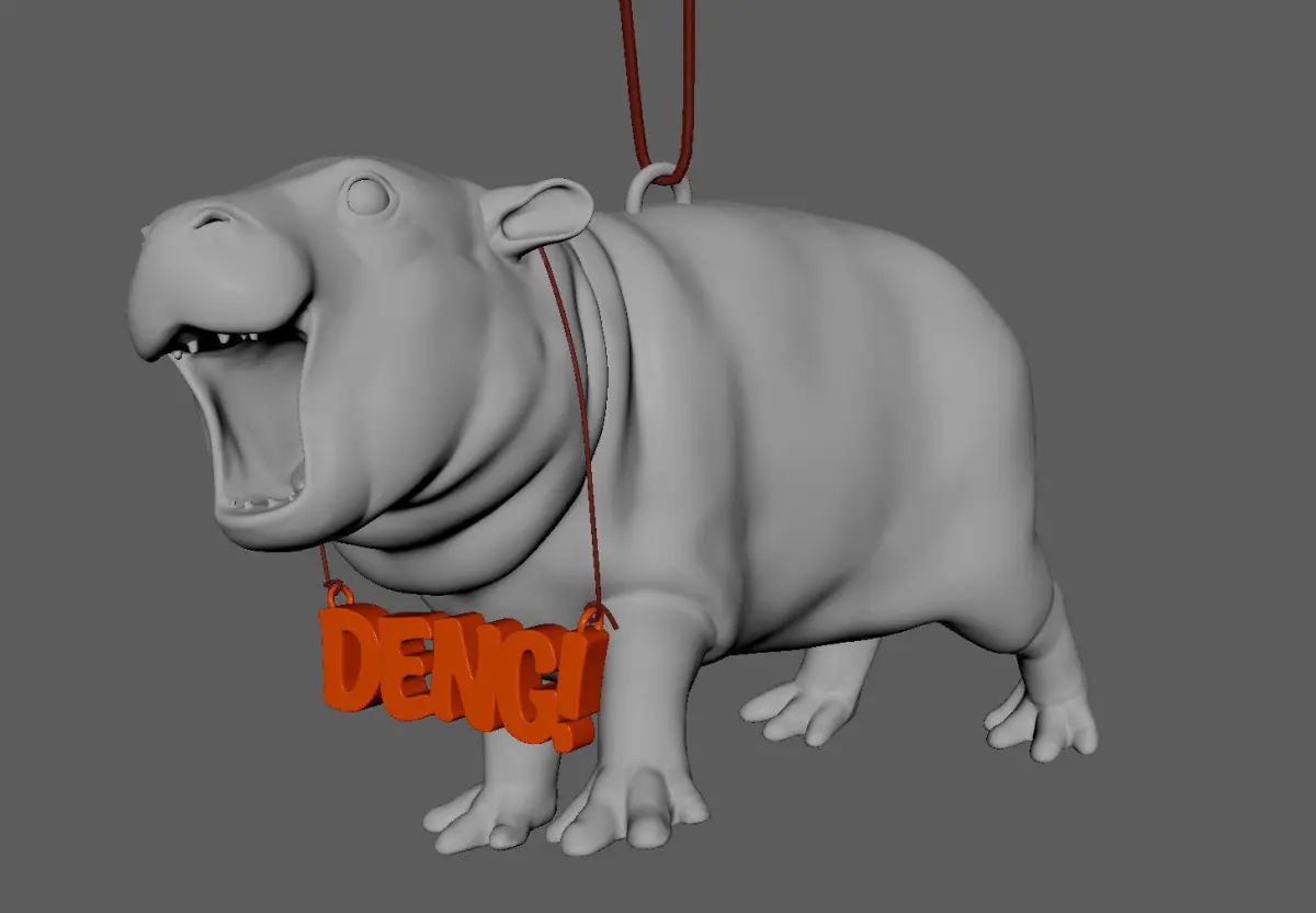 stl and obj versions of Moo Deng baby Hippo for 3d printing. This is a zbrush scult 6cm in size, it comes in two parts, word Deng is a seperate file you can hang around its neck like in the preview.