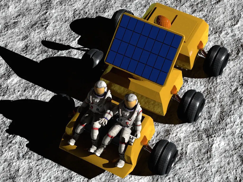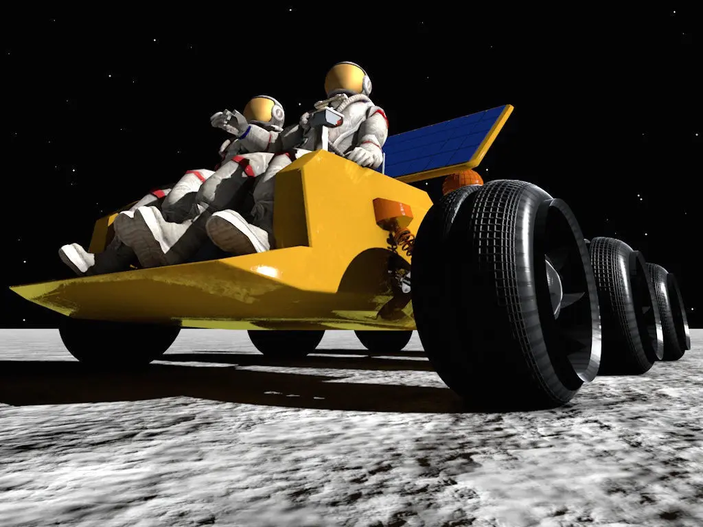 This is a fictional moon rover. Its design was inspired by the comic strip Dan Cooper - Apollo calls Sojuz, which I read with enthusiasm as a child.