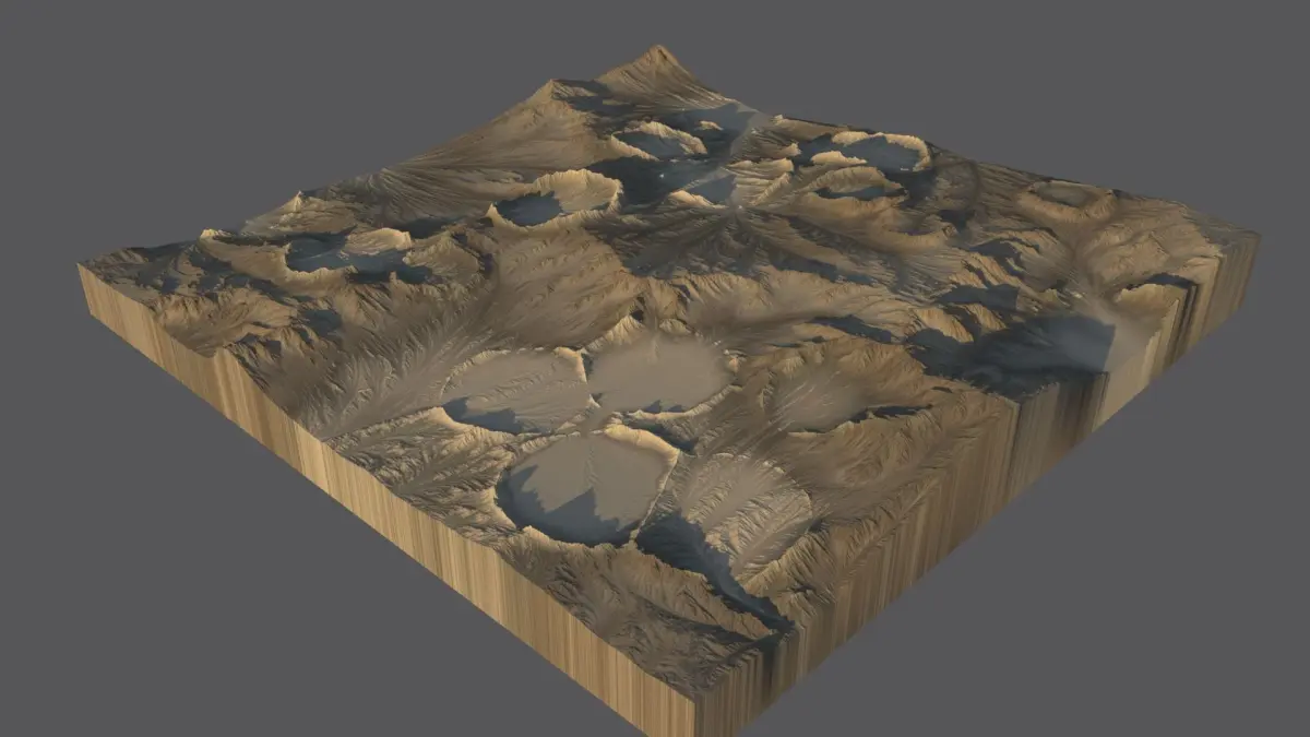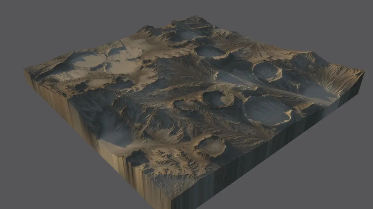 The surface of the moon, with craters and mountains. There is a high and a low version of the model in FBX and OBJ format and a 3d max file for you to play with.