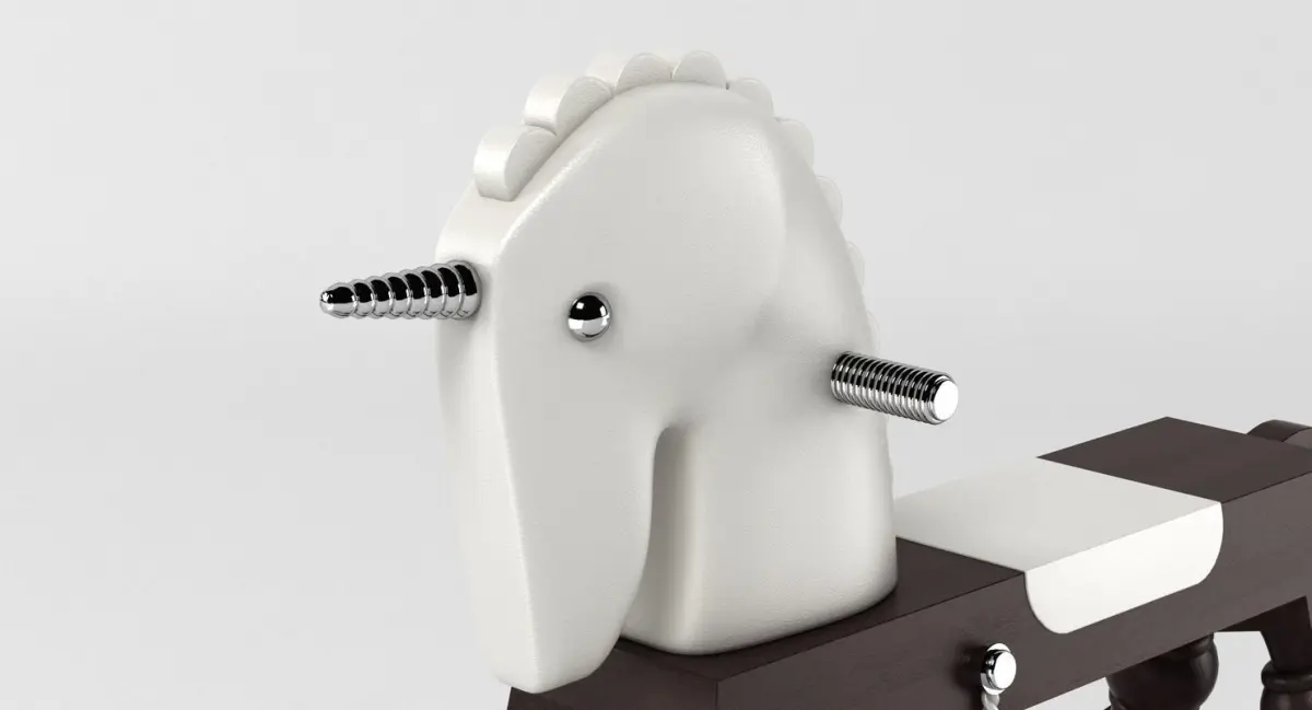 A DETAILED 3D MODEL OF A MOOOI ARION ROCKING HORSE;