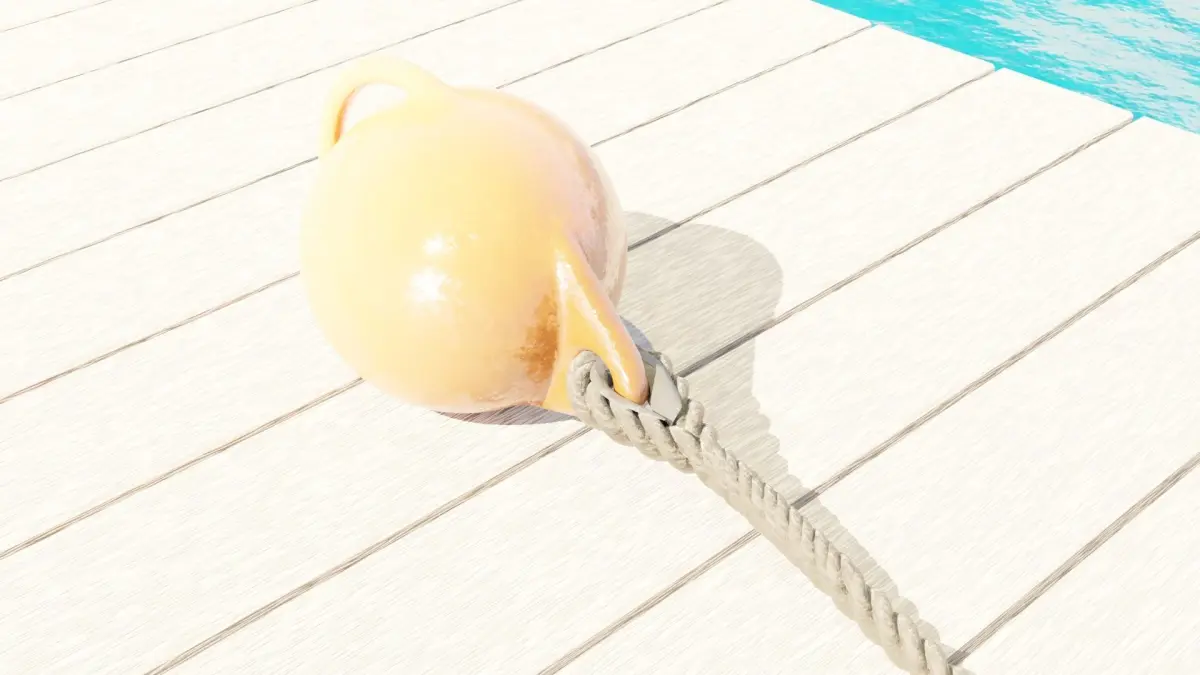 A rubber mooring buoy, used for small boats.