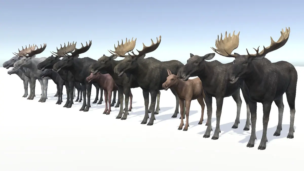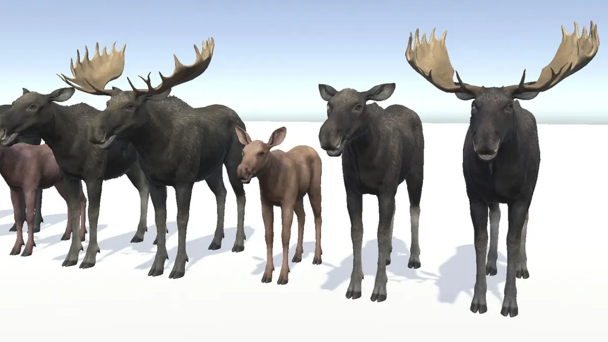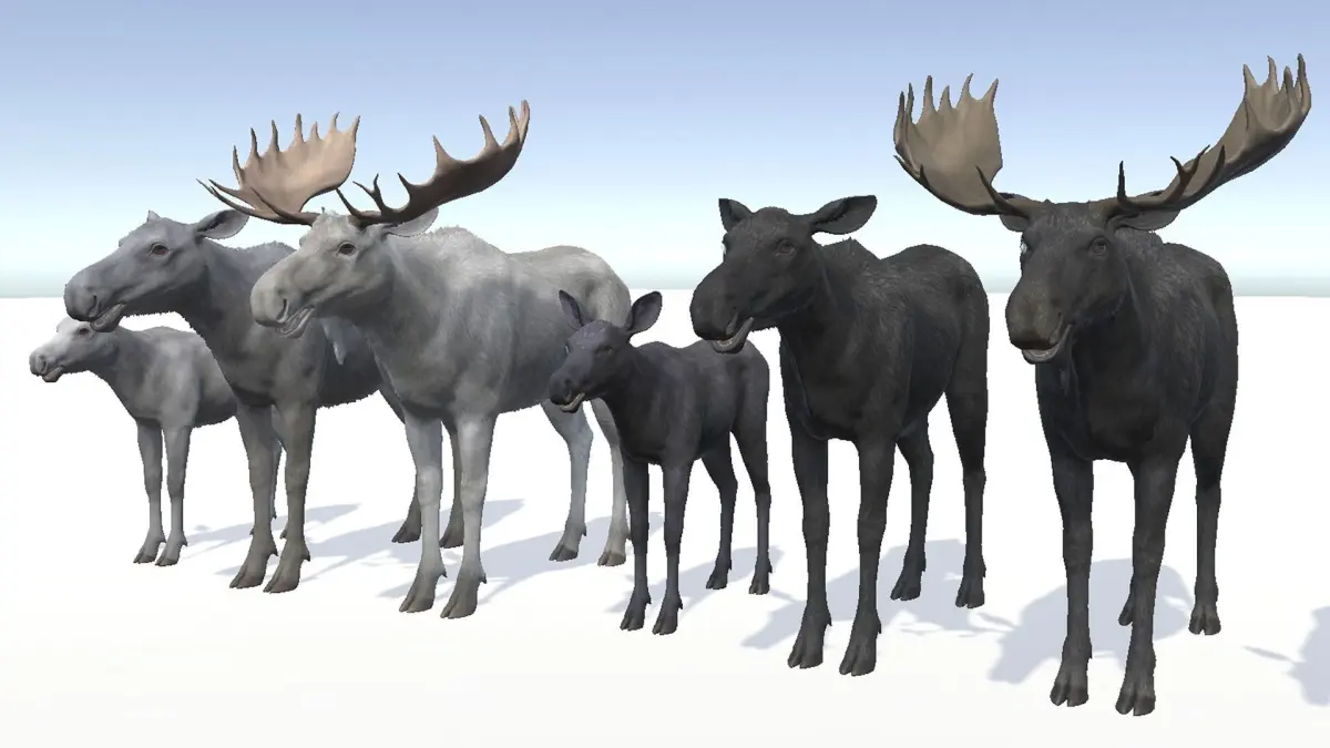 This pack contains: Moose bull, Moose cow, Moose calf.