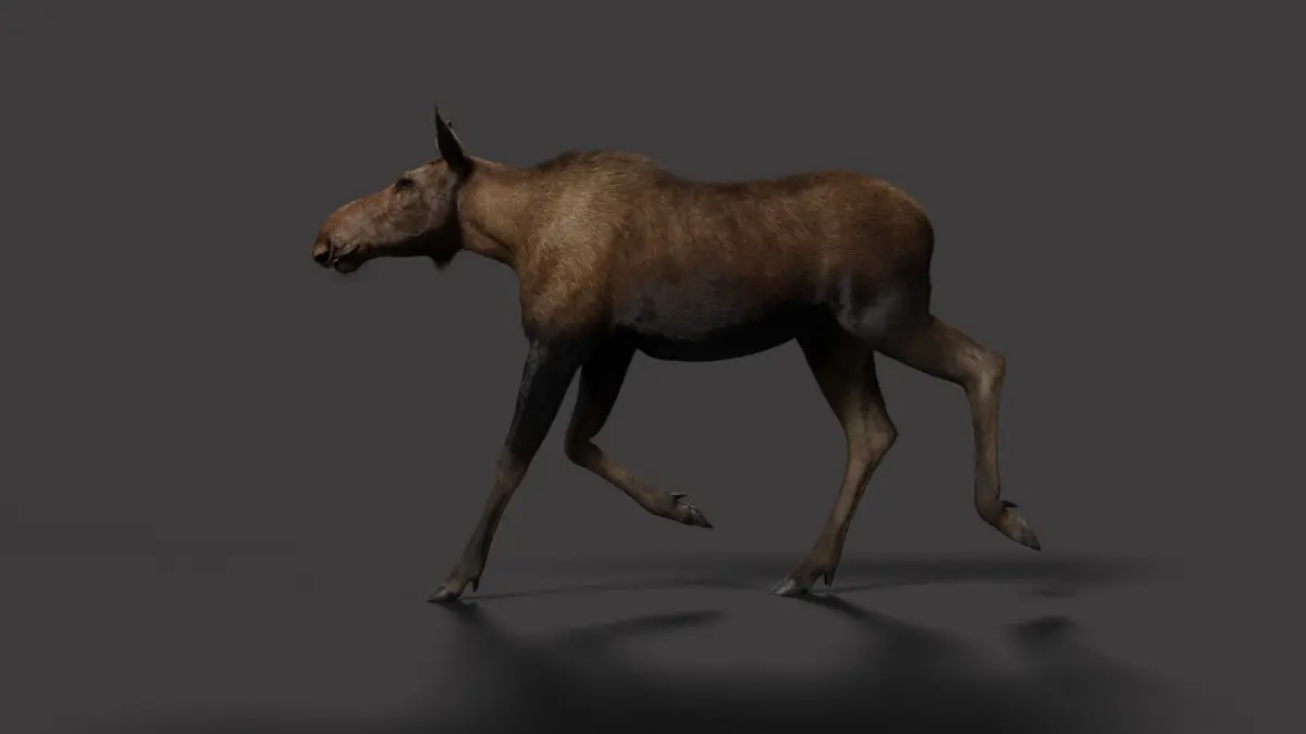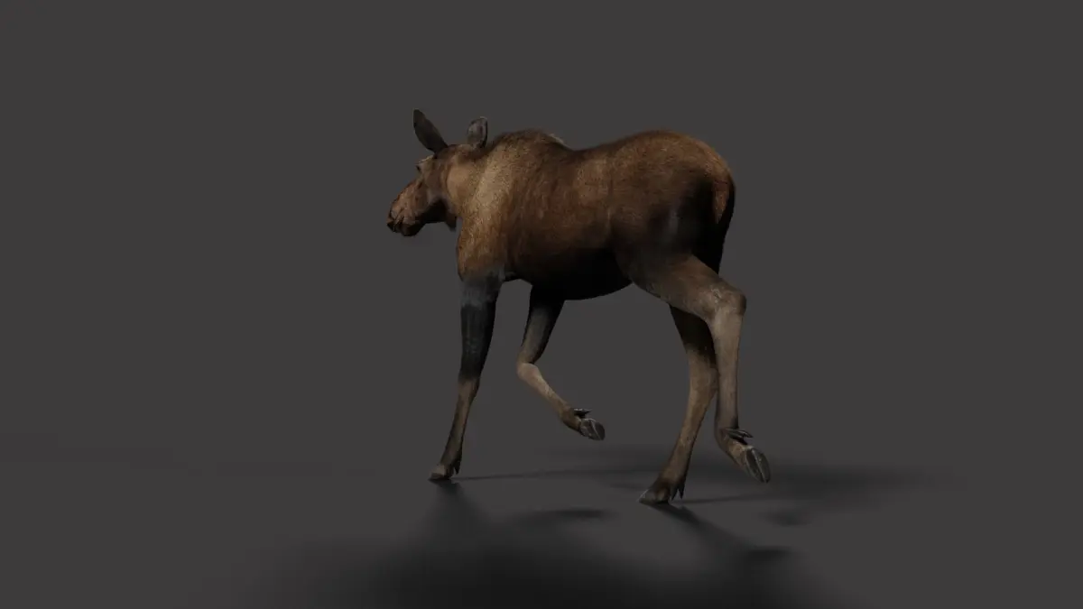 This is a moose model with multiple 4K maps, fur, rigging and animation. The model and fur are made with Blender and Cycles renderer.