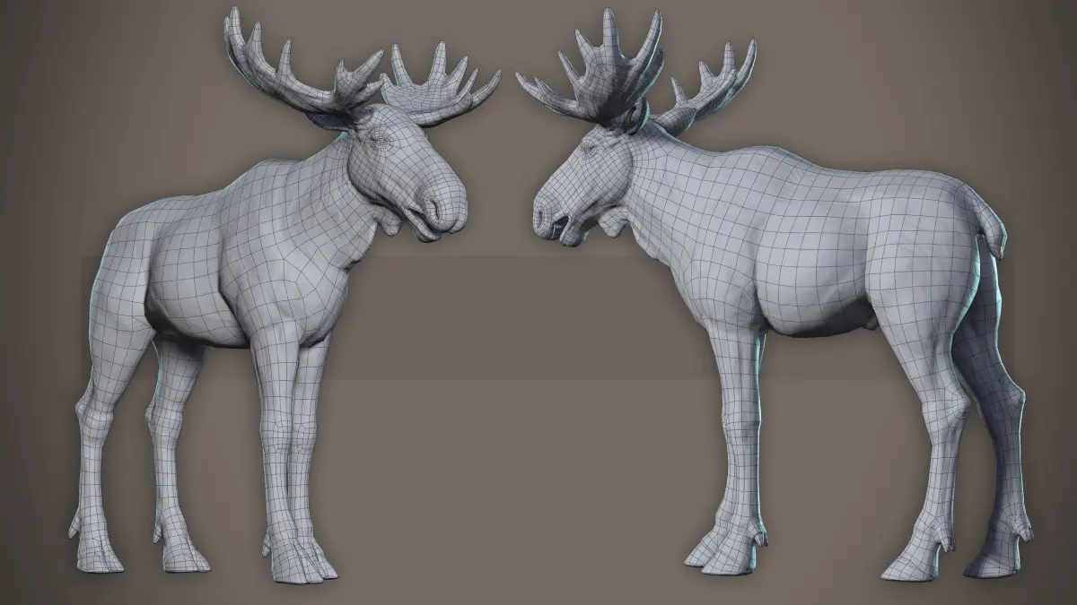 .Ztl (Zbrush File) have a hi poly model of a moose. All objects on separate meshes.