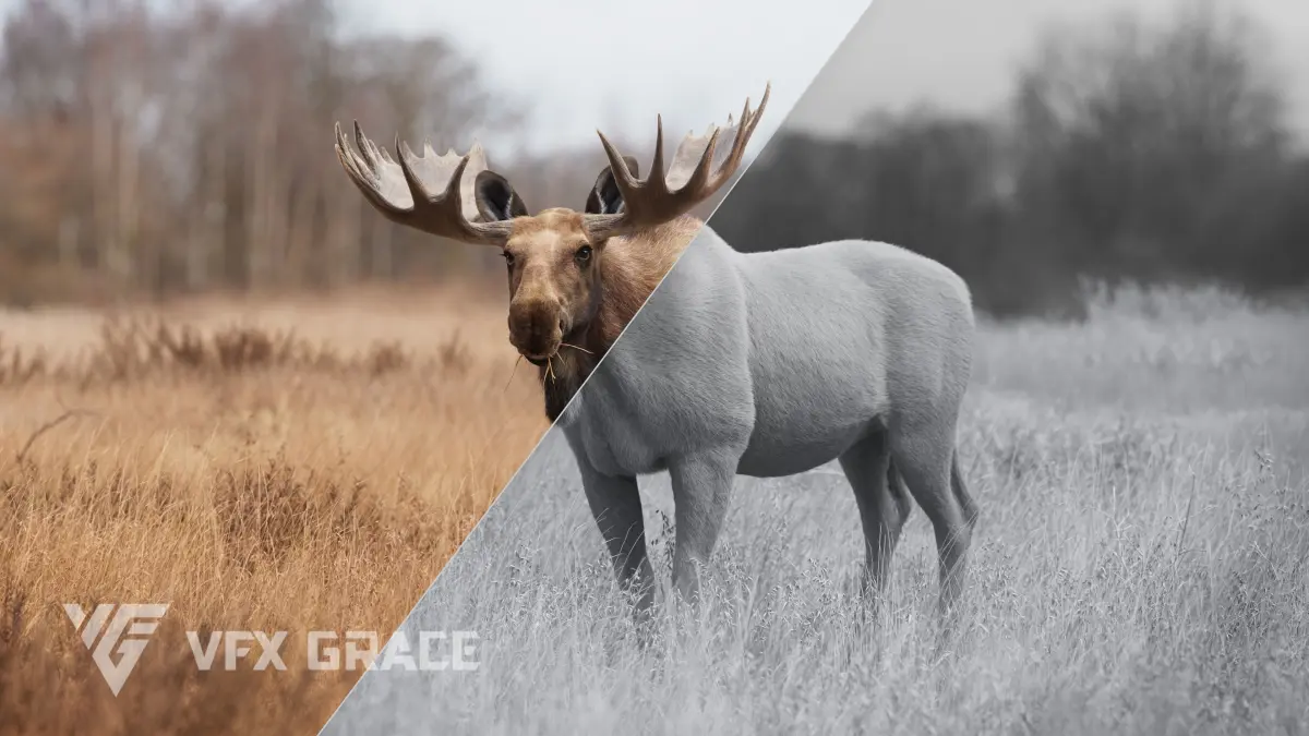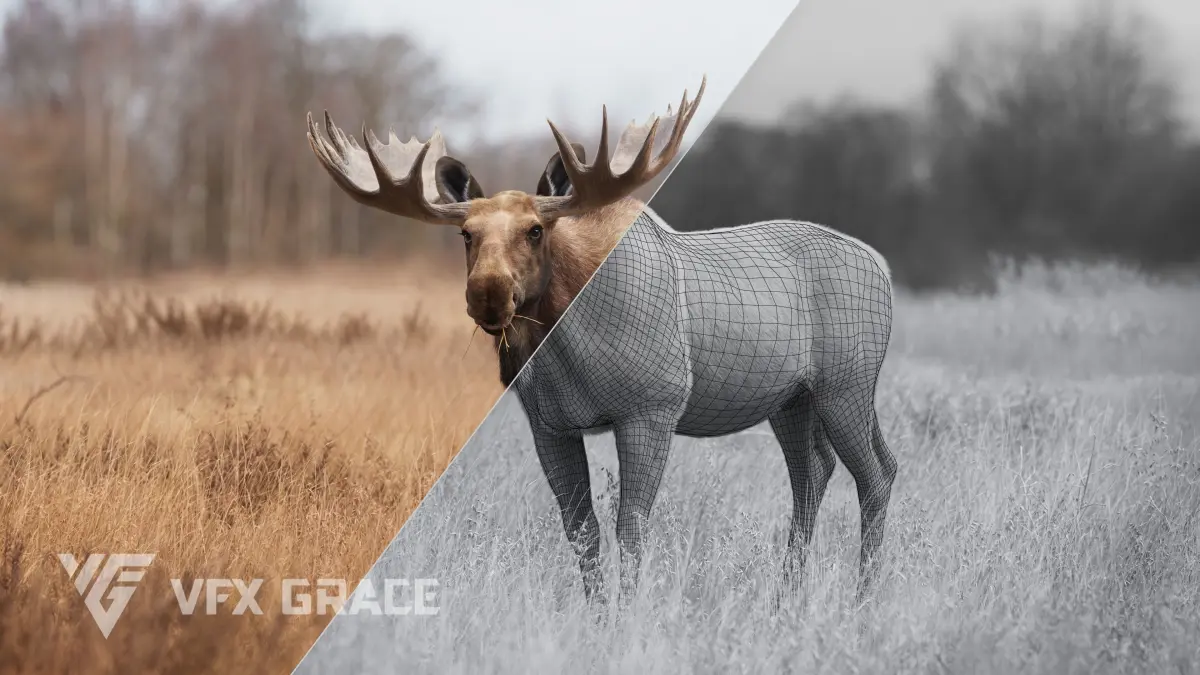 Groom Fur: A complex fur system was created in Blender, and the male moose's fur styling has been perfectly replicated using UE's Groom technology, with finely tuned materials.