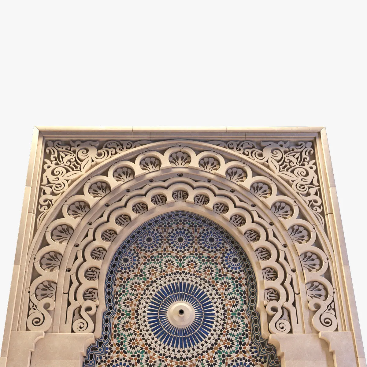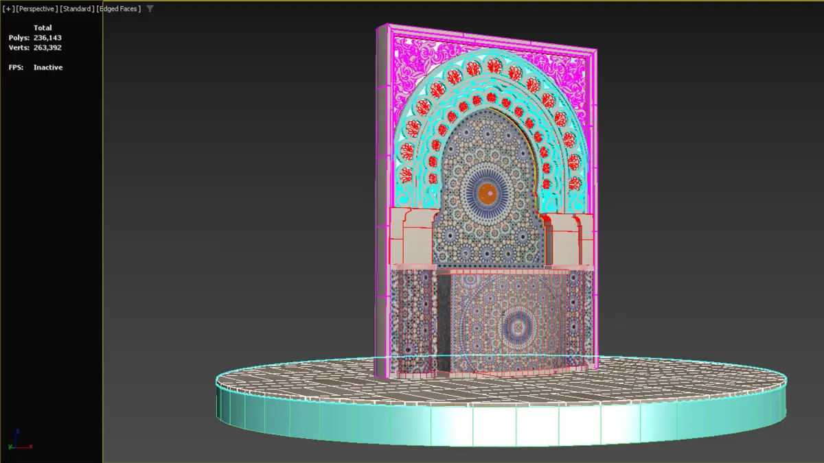 Moroccan style wall fountain for interior and exterior decorationDespite the complexity of the details, but the element is done in a professional way so that the number of polygons does not exceed more than 260 k polygonsThe file is available in different formats as 3DS - FBX -OBJ- STL-BLEND