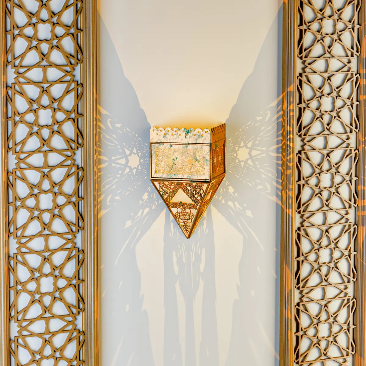 Traditional Moroccan light wall Wall design with wood material.