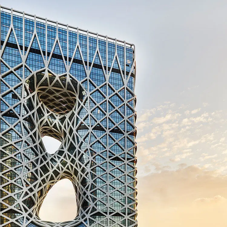 Morpheus Hotel 3D Model with grasshopper script included. The grasshopper (gh) script will generate the exoskeleton and nodes. Morpheus Hotel is the world's first free-form high-rise exoskeleton, with its structural geometric grid negating the need for internal walls or columns that would clutter the hotel's interior.