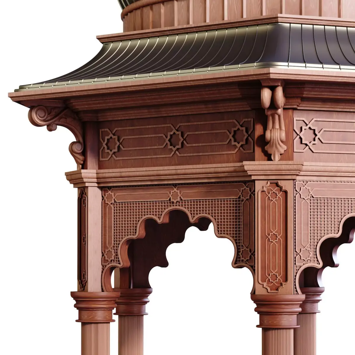 Name: morrocon gazebo 937Type: modelMid: Format: 3Ds Max 2019Export: FBXRender: VRay (6.x), Corona (11)Polys: 702219Verts: 737139Matclasses: Multimaterial,VRayMtl,_CoronaPhysicalMtlUnits: CentimetersDimension: 493.88 x 427.65 x 632.07