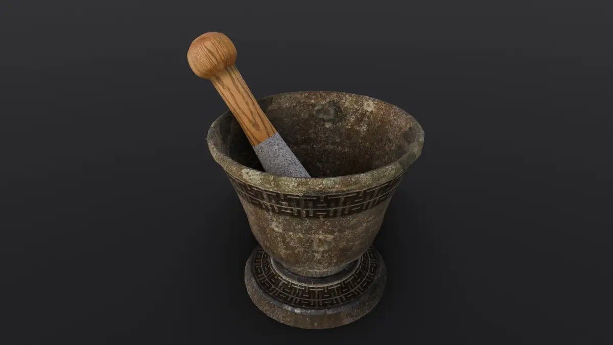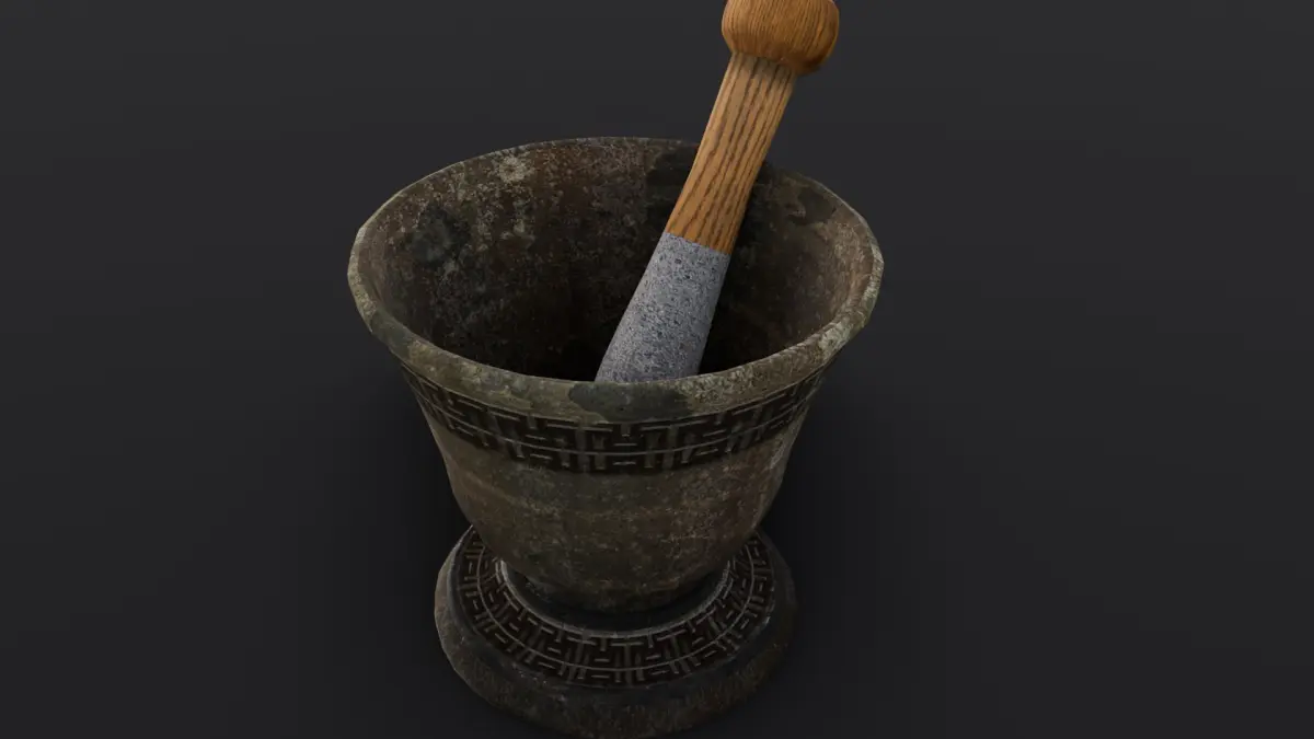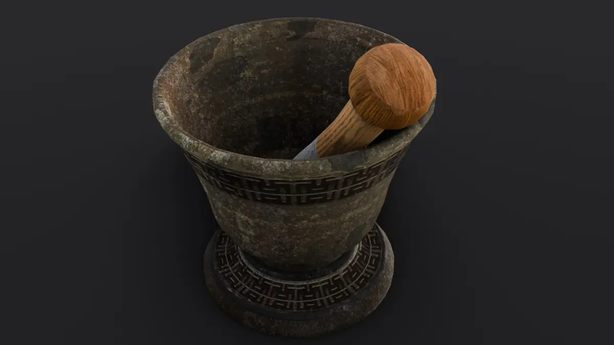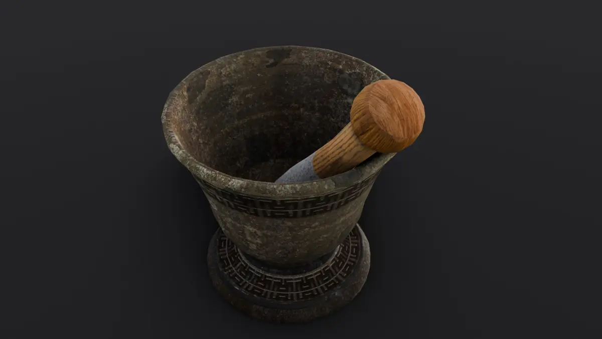 Game Development: As a prop in kitchens, historical, or cultural environments.Film and Animation: For realistic depictions in scenes that require traditional tools.Educational Software: For illustrating ancient or modern cooking methods and herbal preparations.Product Visualization: For marketing or promotional material involving culinary tools.