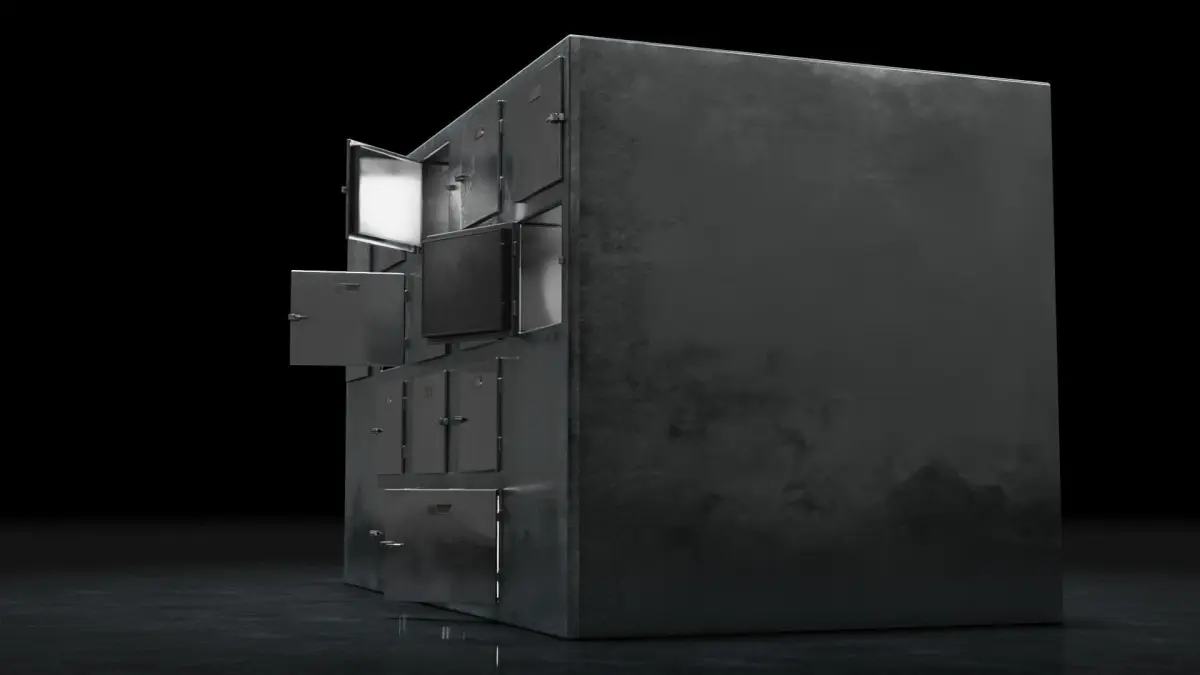 Highly detailed Mortuary Refrigerator, featuring: