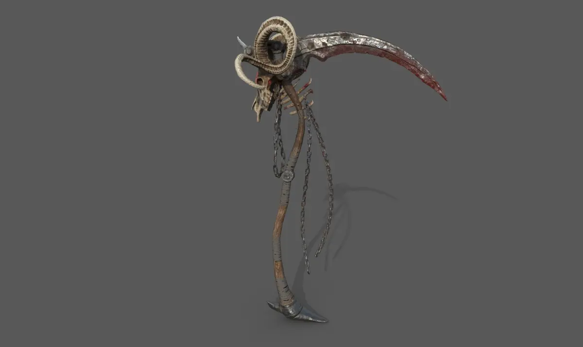 ESPAÑOL:Arma aguadaña plegable, 18KQuads, 8K texturas, optimizada para videojuegos y producciones de cine hardsurface, no tiene texturas. Espero que os guste!PD: no contiene texturas en la compra.ENGLISH:Folding scythe weapon, 18KQuads, 8K textures, optimized for video games and hardsurface film productions, dont have textures. I hope you like it!PS: does not contain textures in the purchase.