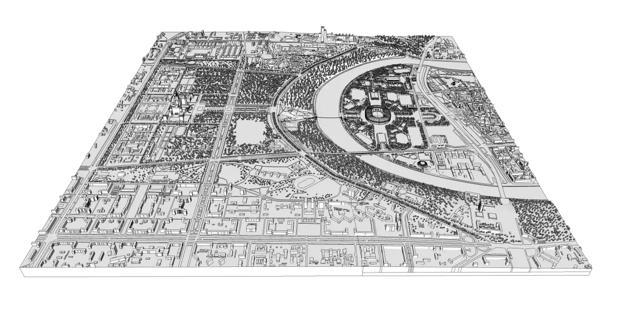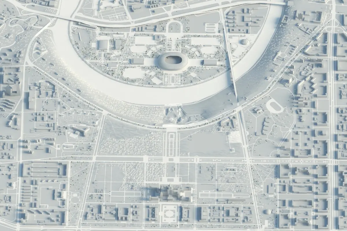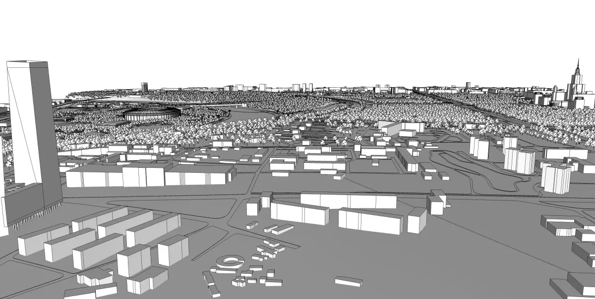 3d model of urban territory. Moscow city in Russia Model contains three different levels of detailed buildings starting from abstract to highly detailed. Perfect for architectural renderings and similar purposes.