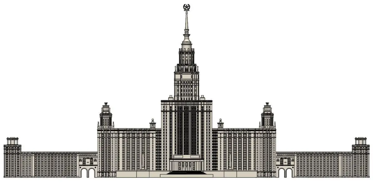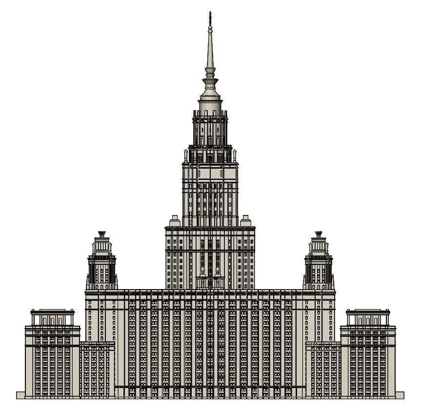Moscow state University. The solid-state model is built in SolidWorks. Dimensions of the model 9240x4378 mm. Height-4370 mm. Saved in step, iges, stl formats.