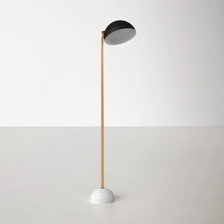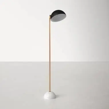 - This mid-century beauty is the ideal floor lamp for your home or office. The black steel shade adjusts up and down to shed light where you need it. Its round marble base in contrasting white keeps it sturdy. Place it next to your favorite chair for the perfect reading light.