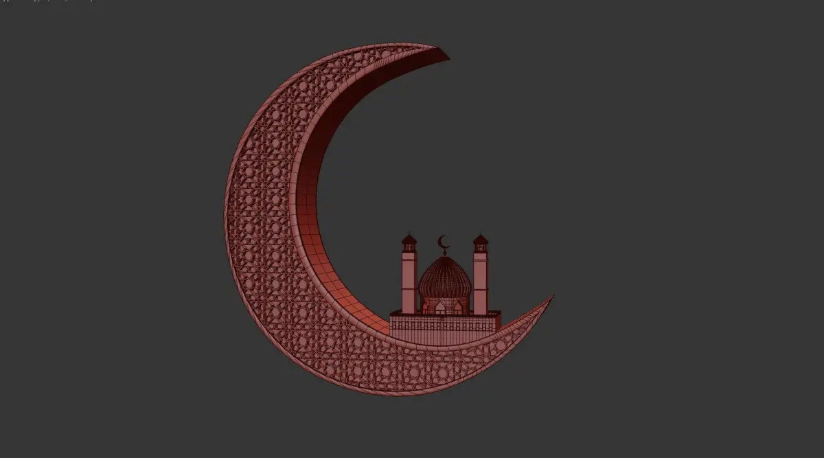 Mosque 3D crescent with 3D model