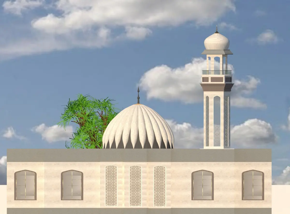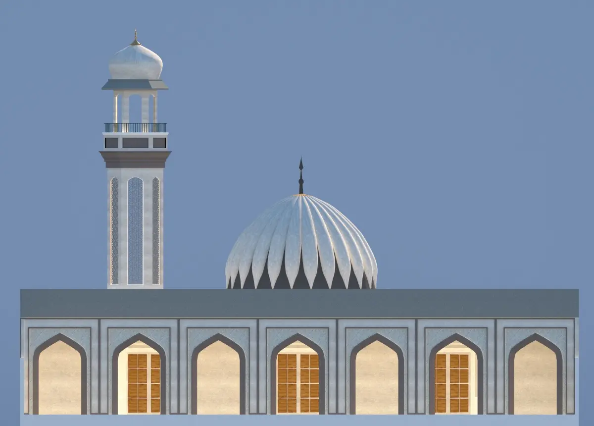 Mosque design3d viewselevation 2d and 3dsectionsautocad 2d plan
