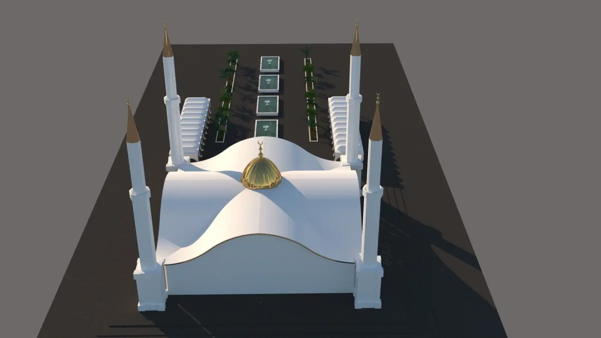 HelloI designed a mosque for you. This is God's house. It is a special design prepared for worshiping and being close to God. It is really possible to make this project.The seating area of the building is 53 x 53 meters and a very magnificent structure has been created. With its 4 minarets, calls can be made in all directions and you can be closer to the sky. The courtyard is magnificent with pools and palm trees. Indoor spaces have been created in the outer courtyard for those who cannot enter the mosque. Its static structure has a special feature. While its white color represents purity and cleanliness, it was specifically chosen to keep you away from the heat.Pocket manufacturing is considered precast, especially prepared and interlocking.Best regards, could you contribute to my life by purchasing my only source of income?