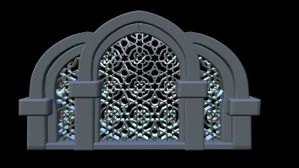 this is a 3d model of a mosque window. it has textures applied to it.