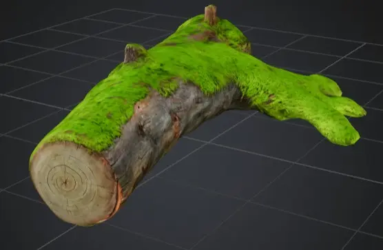 A detailed Blender-made 3D model of a fallen log covered in vibrant moss, ideal for creating realistic forest or outdoor scenes in architectural renders, games, and CGI projects. Ready for integration into your environment designs.