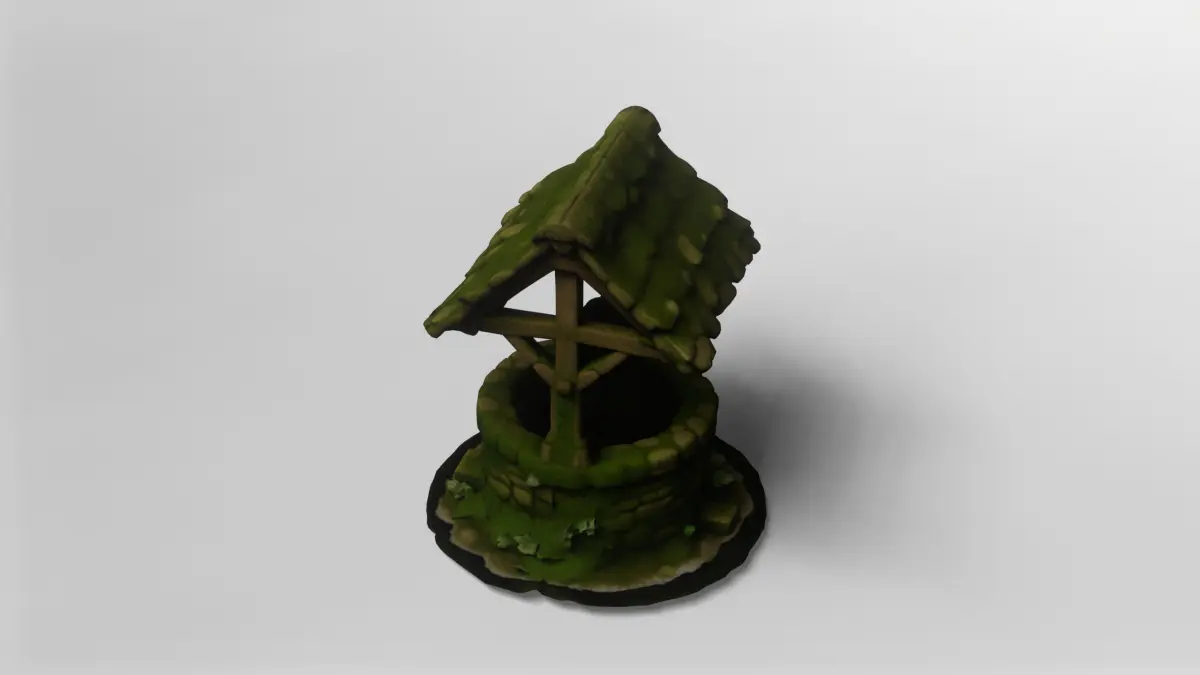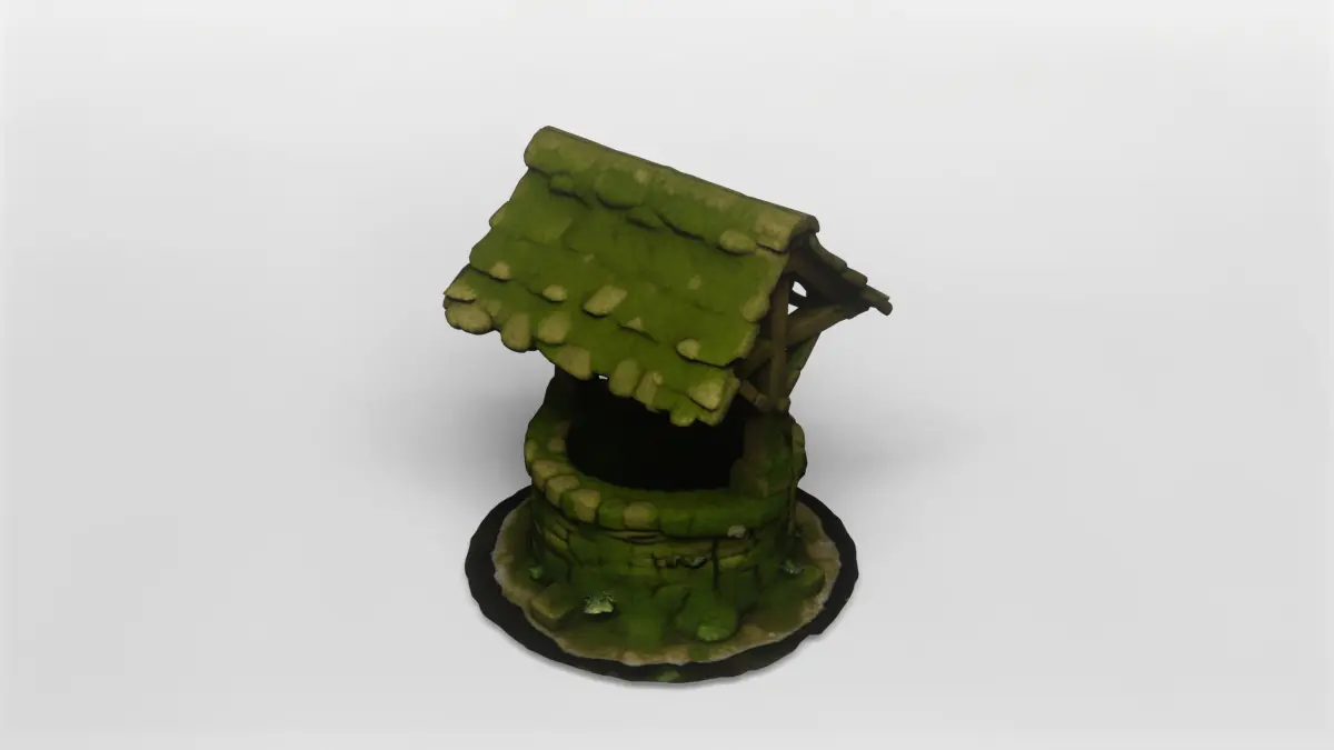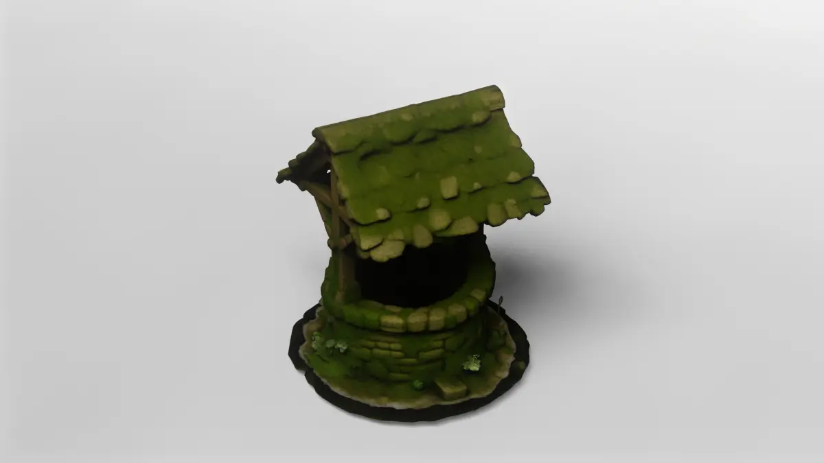 This detailed 3D model depicts a classic medieval stone wishing well, covered in lush, realistic moss and organic growth. The well structure features expertly modeled stonework, giving it an authentic, weathered appearance. The wooden roof is crafted with care, complete with aged shingles and a sturdy wooden frame, all richly textured to convey years of exposure to the elements. The central spindle and rope, along with the iron hook, add functional realism, making this well perfect for immersive fantasy or historical scenes.The model is meticulously UV-mapped and comes fully textured, ensuring that every mossy crevice and wooden plank is rendered with lifelike detail. The included textures capture the essence of natural aging, with green moss creeping over the stones and subtle dirt and weathering effects on the wood. Small tufts of grass and sprouting plants at the base further enhance the model’s realism, making it ideal for outdoor environments in games, animations, or visualizations.This 3D model is available for download in the gmb format, with all textures included for a seamless workflow. The model is also offered in fbx format, ensuring compatibility with a wide range of 3D software and engines. Both formats are optimized for ease of use, making it simple to integrate the well into your projects without additional setup.Perfect for fantasy, medieval, or rural settings, this mossy wishing well can serve as a central prop or background asset in your scenes. Its high level of detail and natural appearance make it suitable for close-up renders as well as broader landscape compositions. Whether you’re building a magical village, an RPG environment, or a historical simulation, this model brings a touch of realism and charm to your work.