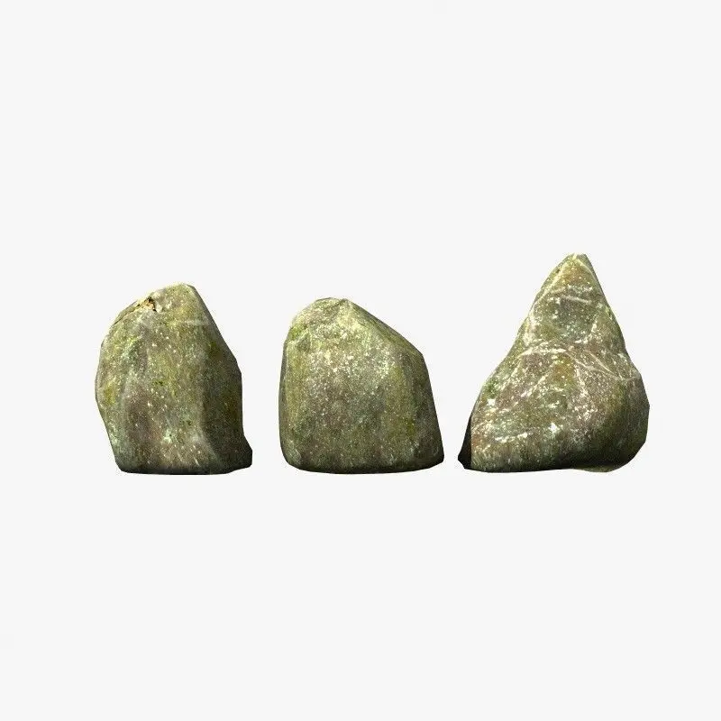 Three variations of a mossy rock. Three rocks are in separate object files. Individual rock texture resolution is 2048x2048.