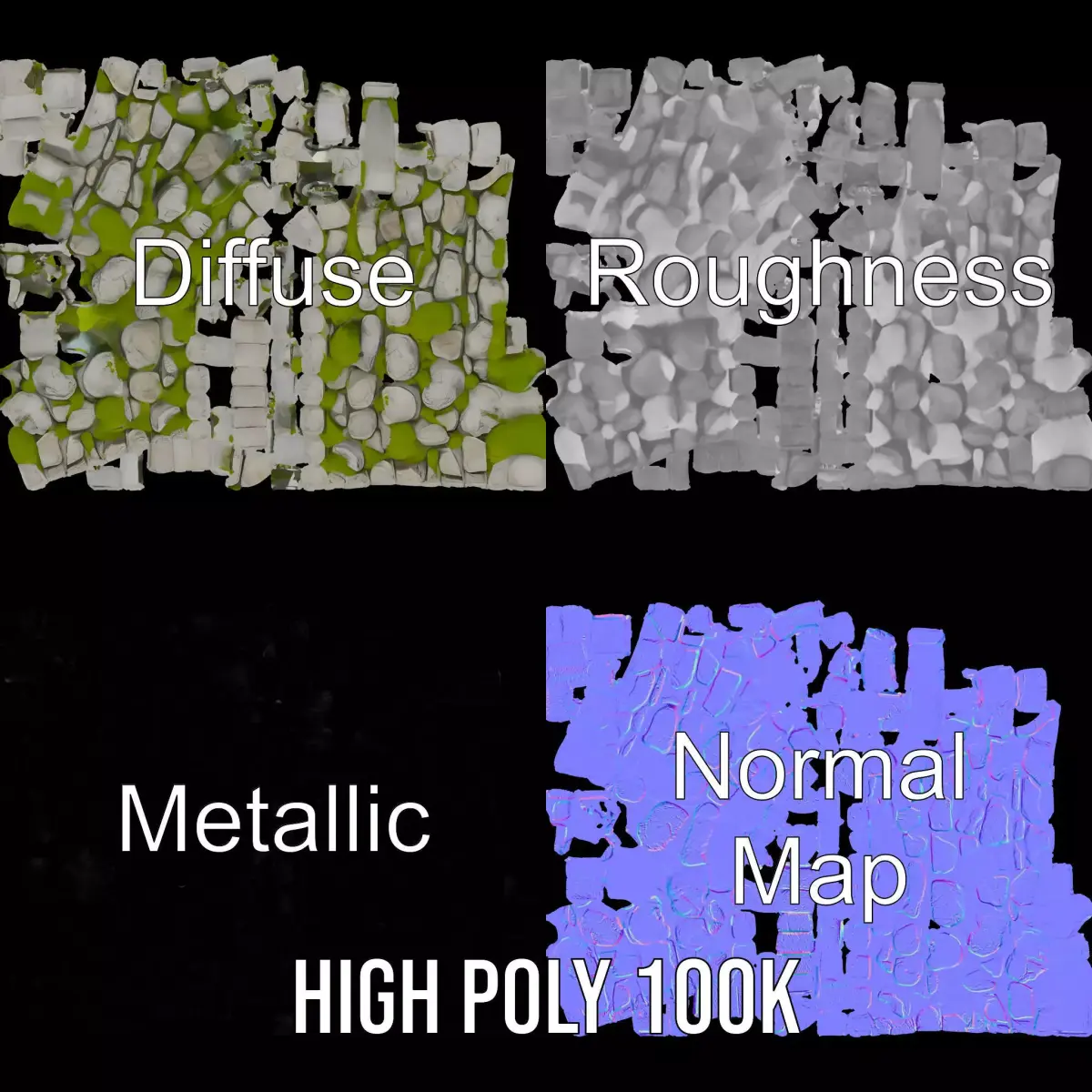 This Mossy Stone Wall model pack features detailed, textured stone blocks interspersed with vibrant green moss. Perfect for adding natural ambiance and realism to your scenes. Each model has 3 levels of detail: low-poly (1000 triangles for mobile), middle-poly (10,000 triangles for environment), and high-poly (100,000 triangles), which allows for the use of this model in production rendering(such as 3ds max, Maya, Cinema4d, Blender, Vray/Corona/Cycles and all other), game engines (Unity and Unreal compatible), and interactive presentations, providing a choice of detail based on the LOD System principle. Ideal for architectural visualization, historical recreations, or fantasy environments. The model's textures are PBR, Diffuse, NormalMap, and reflection/roughness/metallic, suitable for any modern rendering engine. All models are accurately unwrapped and have no overlapping UV. All textures are 4096*4096 in size. If you like this model, please give it a thumbs up and leave a comment!