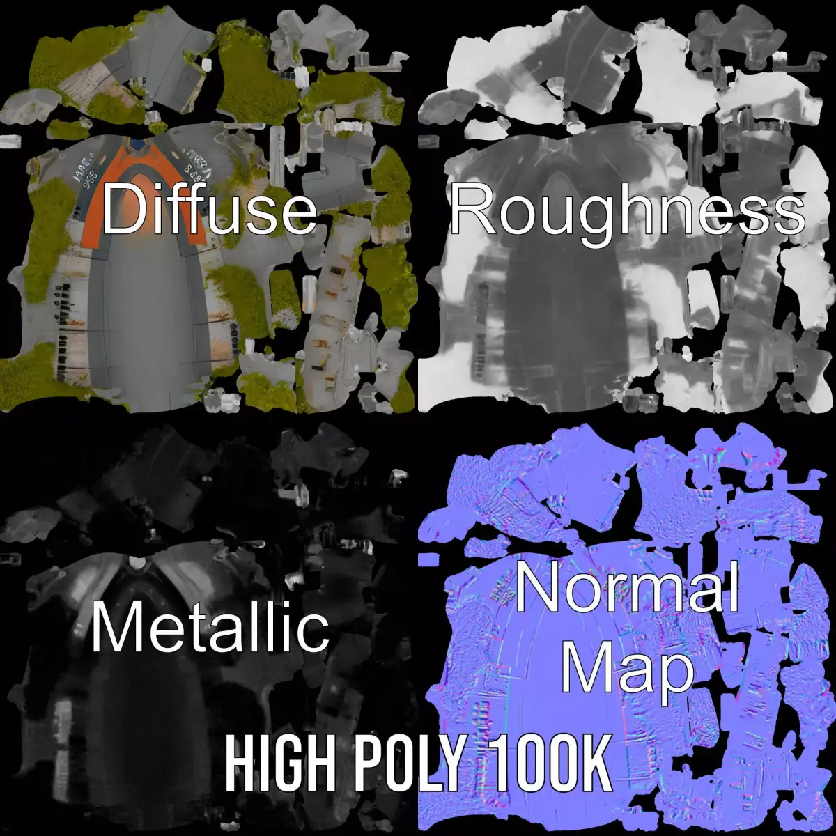 The model's textures are PBR, Diffuse, NormalMap, and reflection/roughness/metallic, which are suitable for any modern rendering engine. All models accurately unwrapped and have no overlapping UVs.